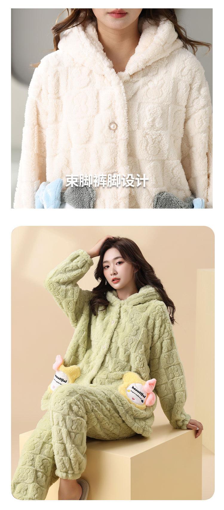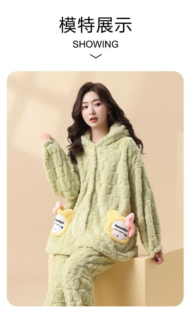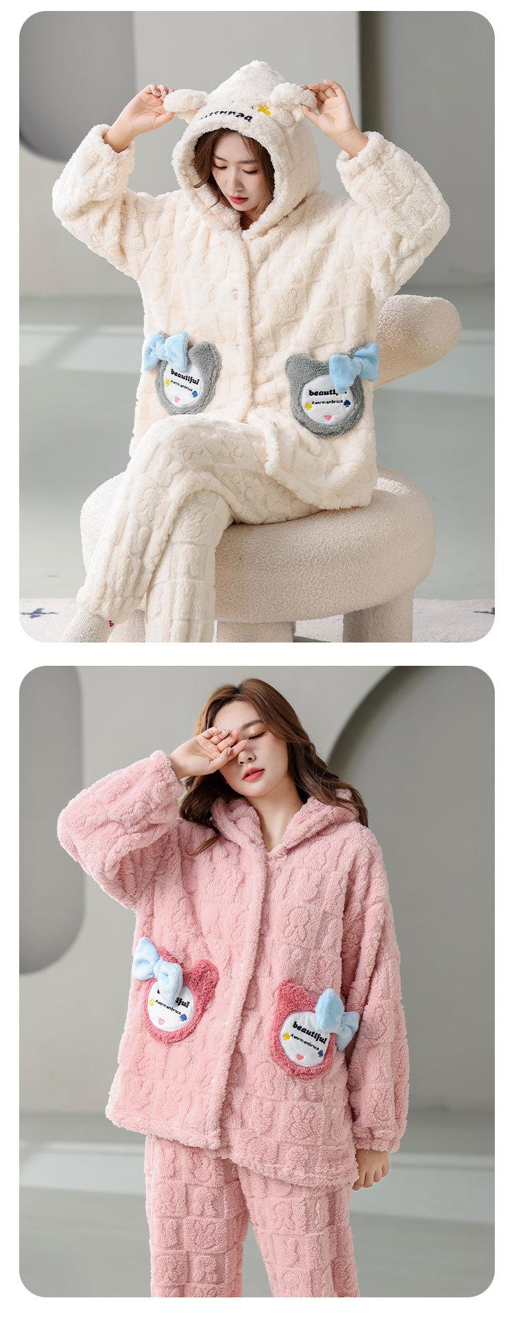 Compra Pijama para mujer otoño e invierno forro polar de coral engrosado con forro polar cálido lindo con capucha franela estudiante traje para estar en casa al por mayor en Joom.pro