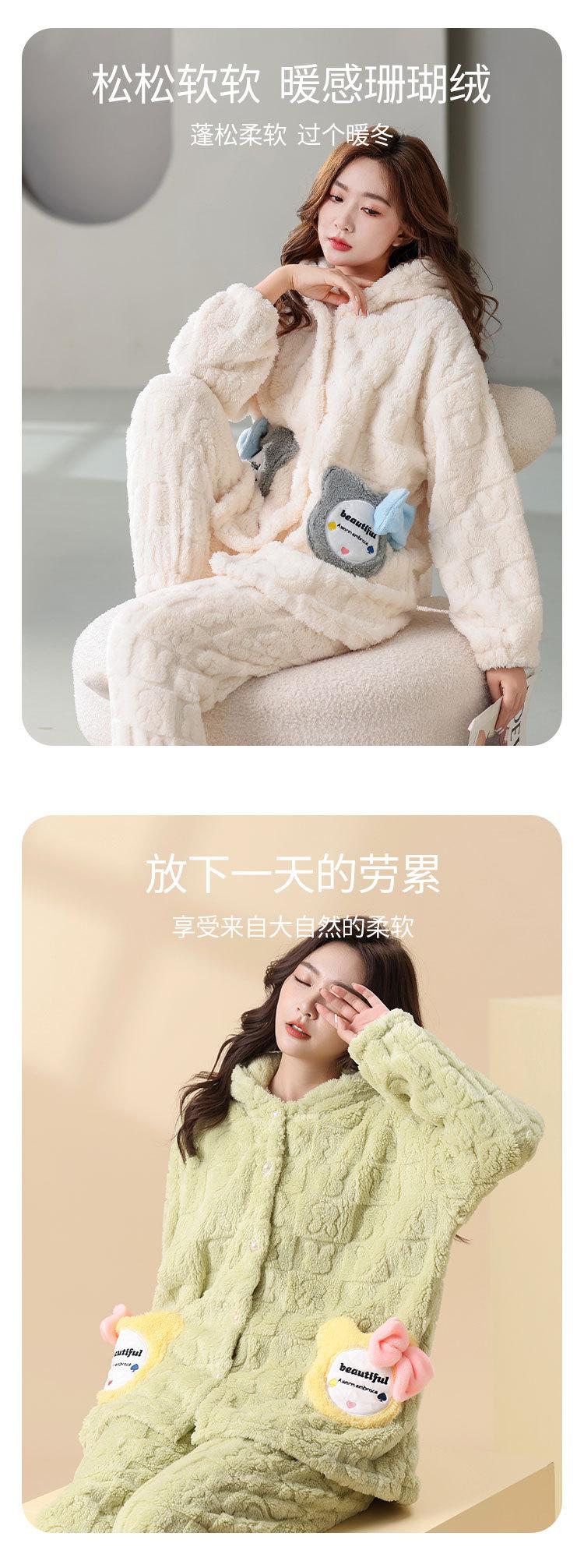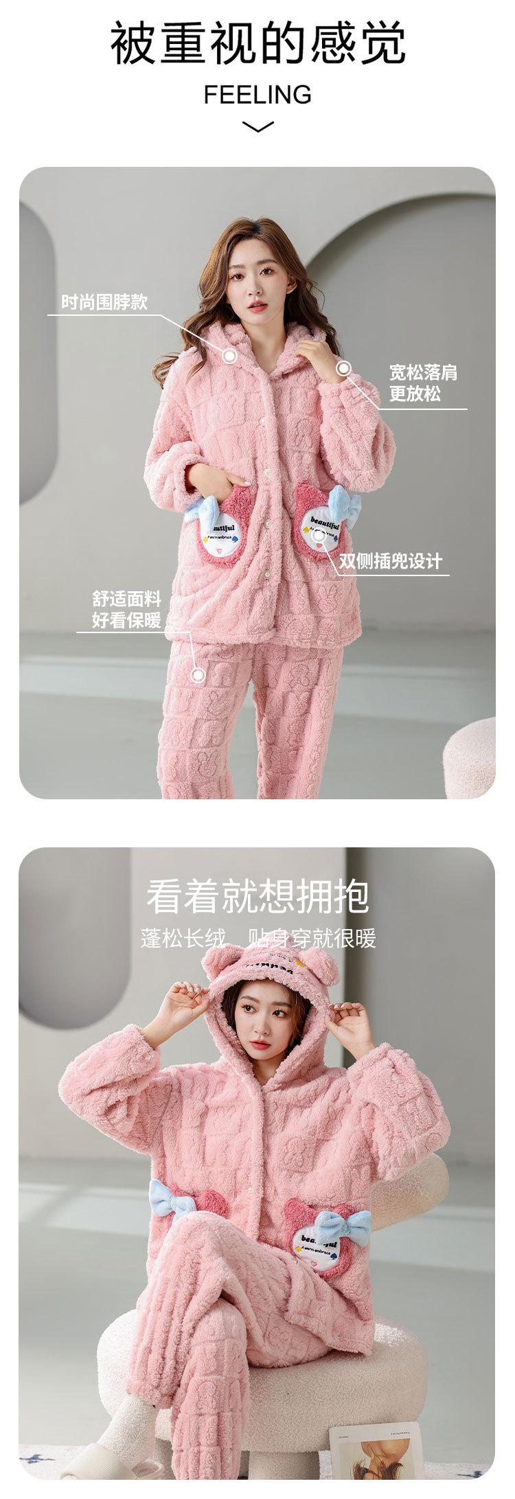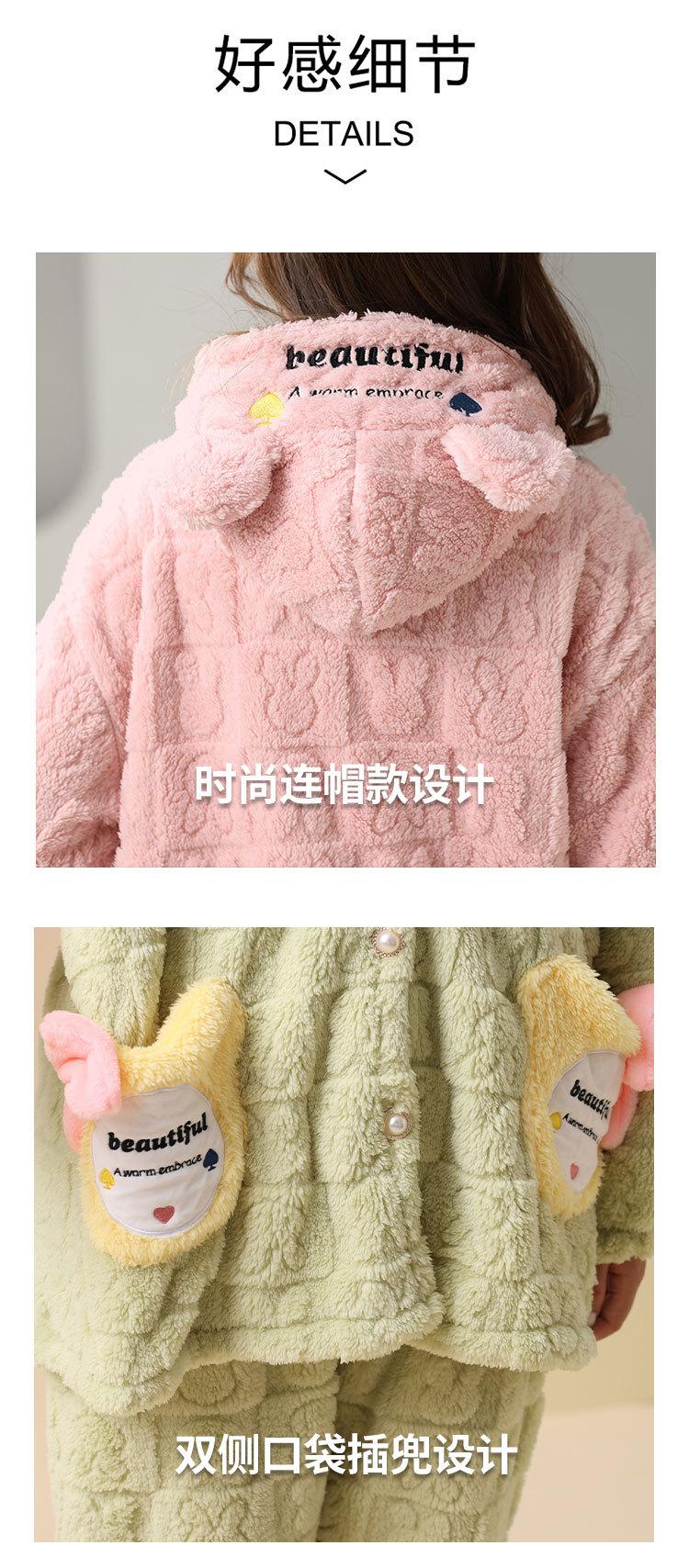 Compra Pijama para mujer otoño e invierno forro polar de coral engrosado con forro polar cálido lindo con capucha franela estudiante traje para estar en casa al por mayor en Joom.pro
