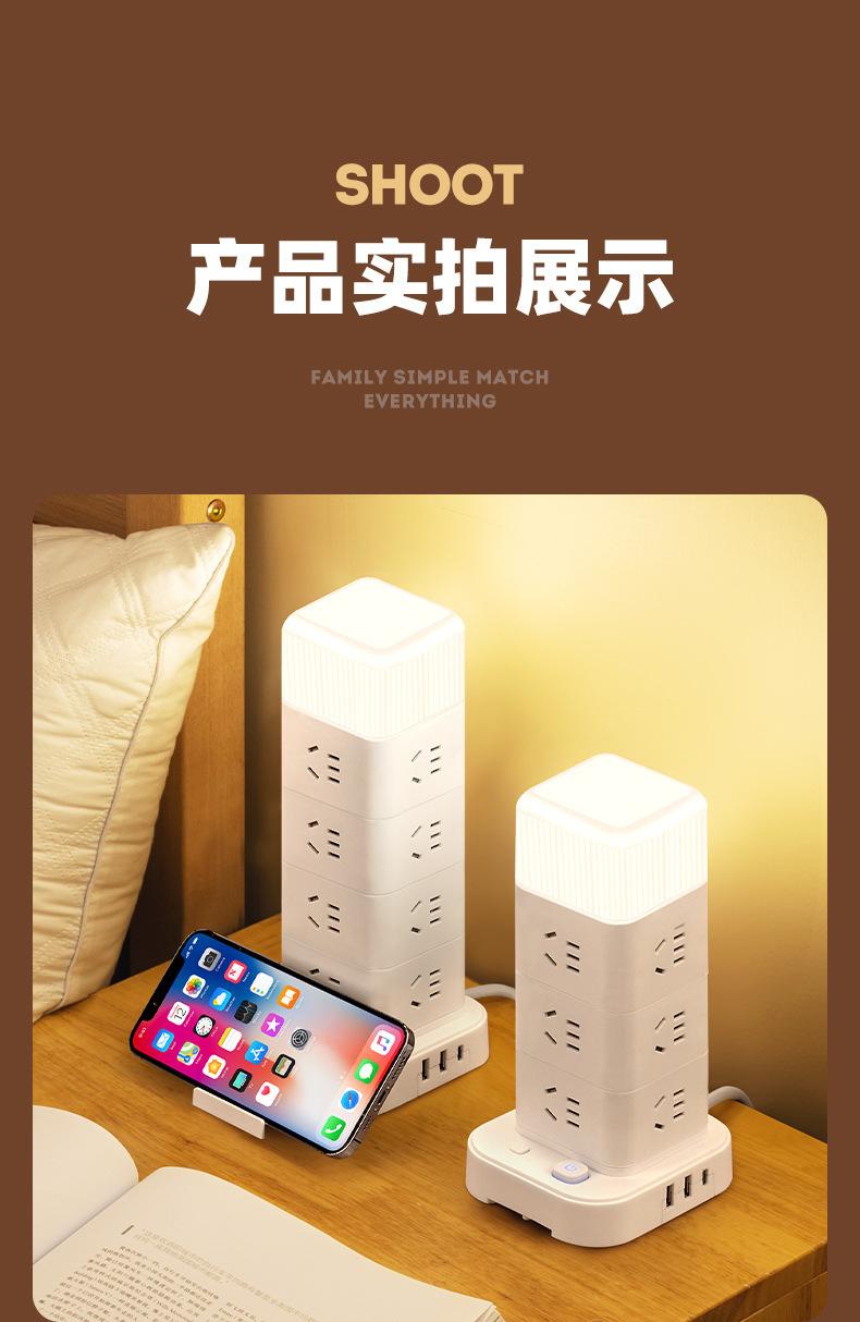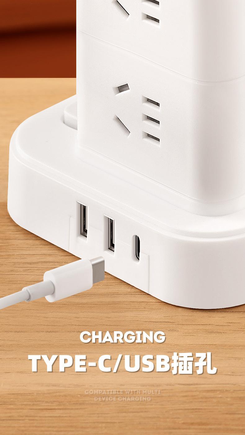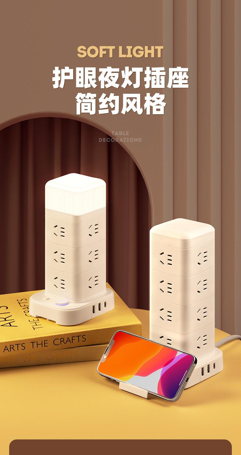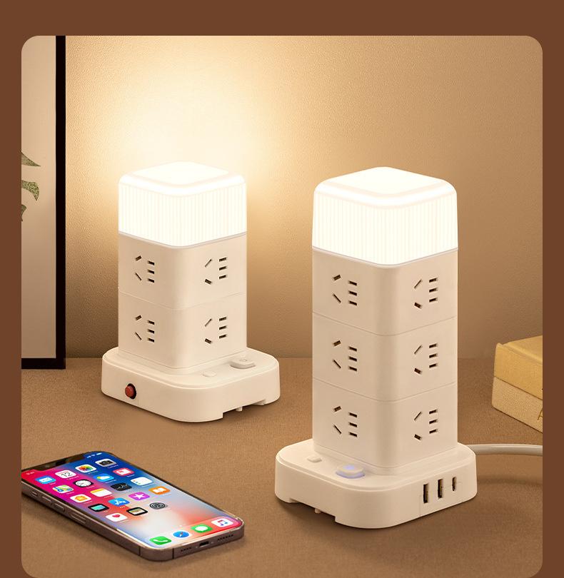 Enchufe vertical inteligente con carga USB para teléfono móvil, torre multipuerto, oficina, hogar, tablero de cableado creativo, cubo
