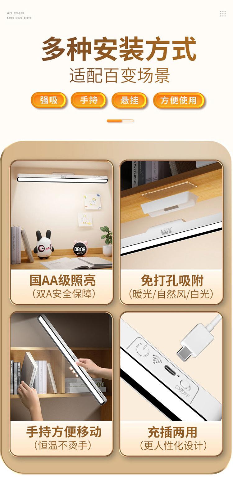 Lámpara de escritorio transfronteriza para dormitorio de estudiantes, lámpara de protección ocular, lámpara de noche giratoria magnética LED, lámpara recargable y fría.