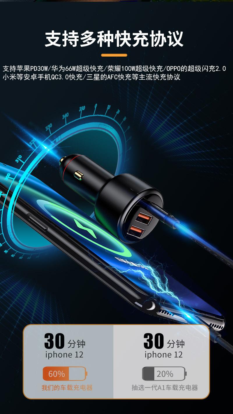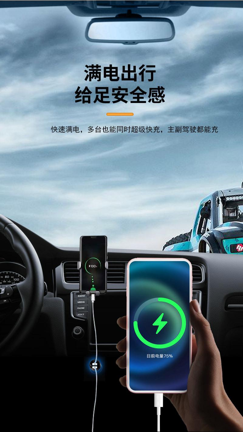Car charger, Car charger 6A fast charging line, Car charger PD fast charging line, Car W charger 100W a drag three data line