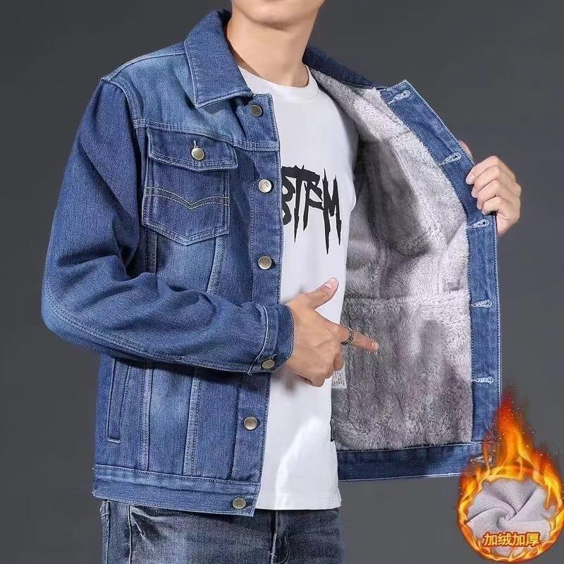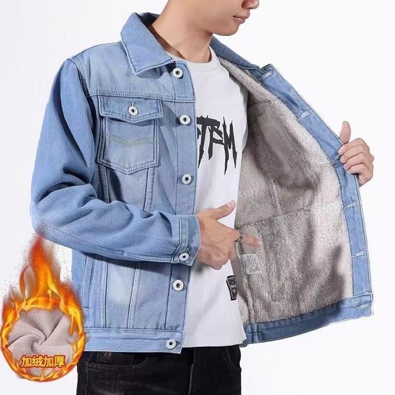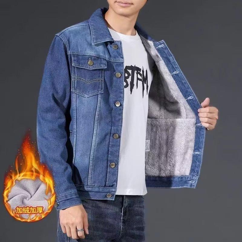 Abrigo vaquero de otoño e invierno para hombre, chaqueta juvenil gruesa con forro polar, chaqueta acolchada de algodón, chaqueta holgada y moderna para hombre