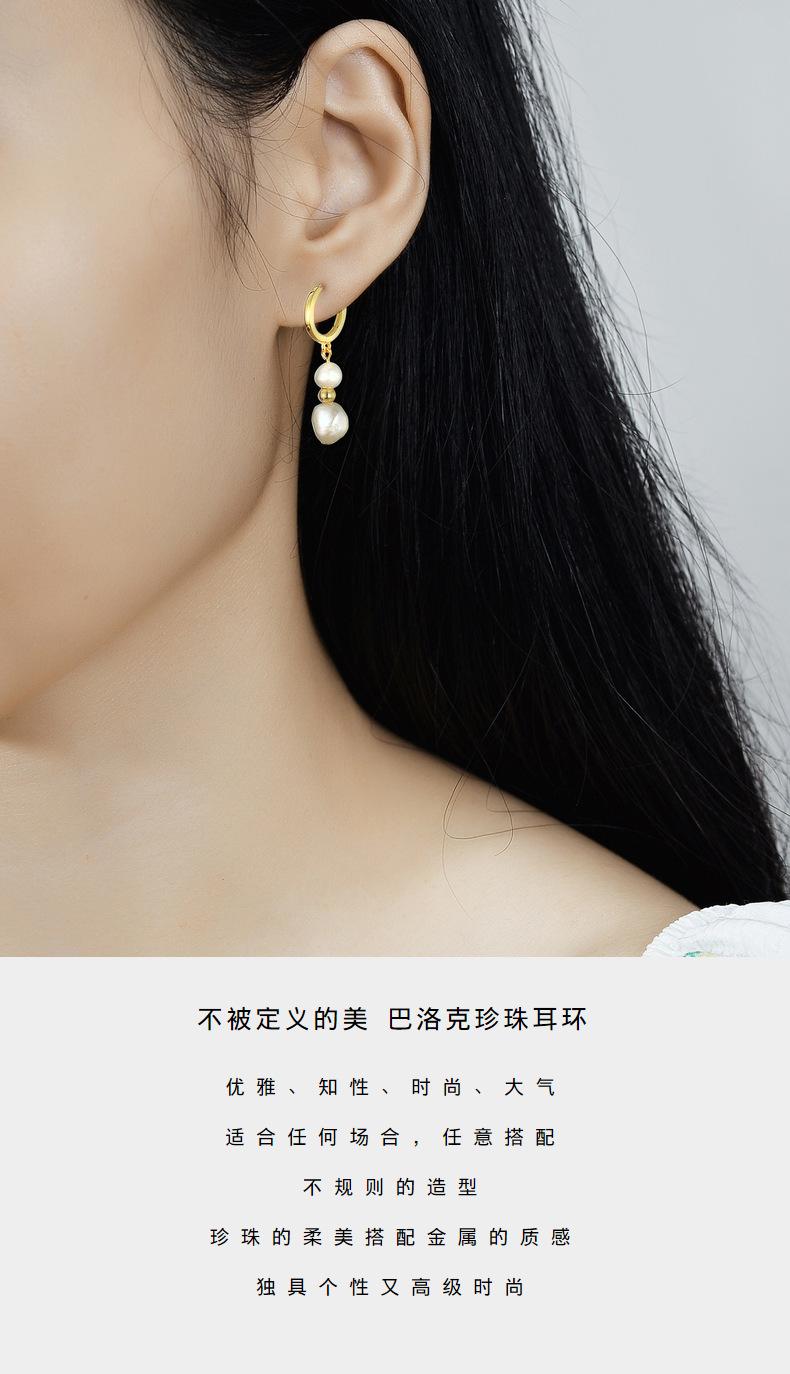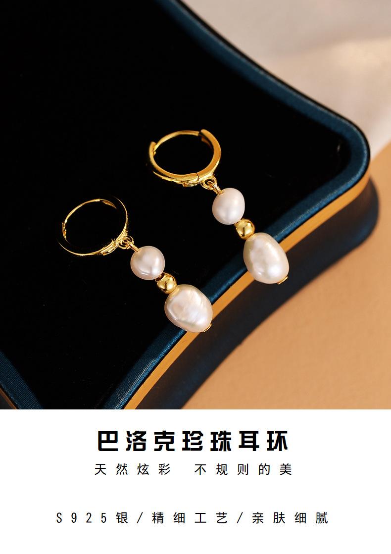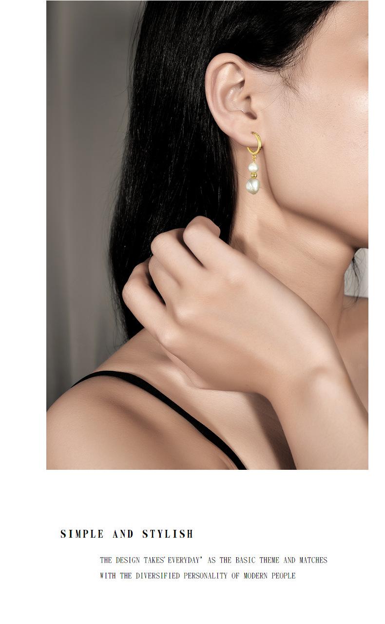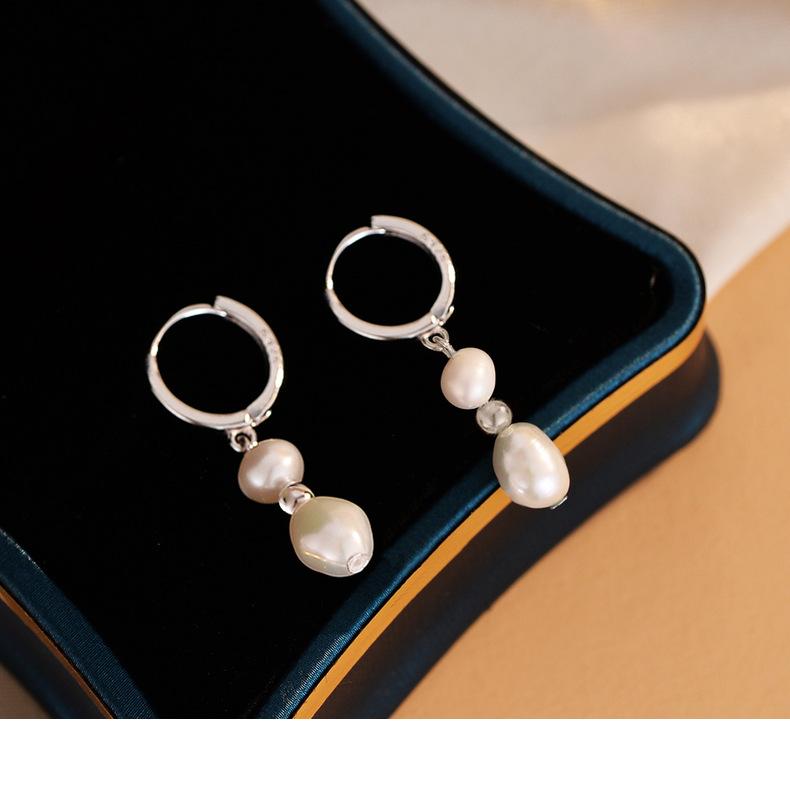 Compra Aretes Asimétricos de Perla Barroca Natural de Plata Esterlina S925 Aretes Franceses de Alta Gama Joyería Hebillas para Oreja para Mujer al por mayor en Joom.pro