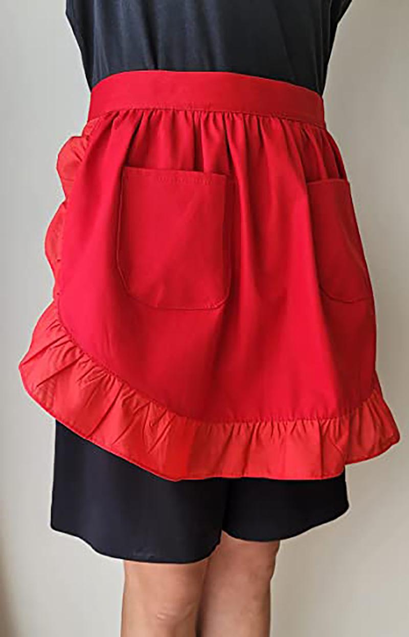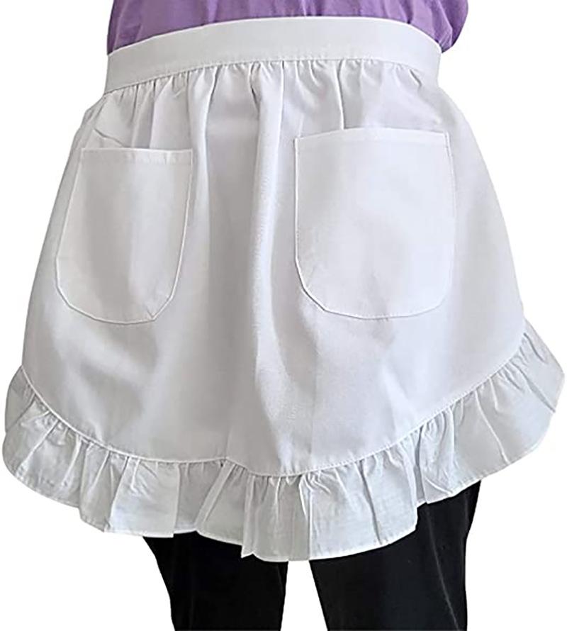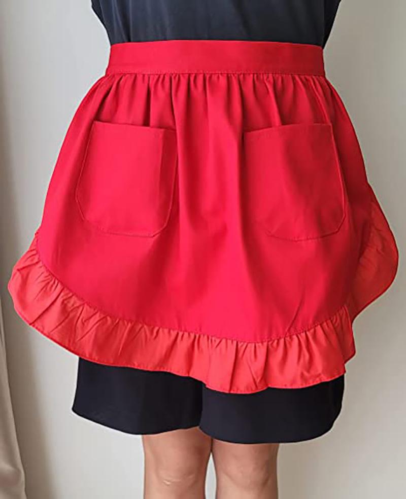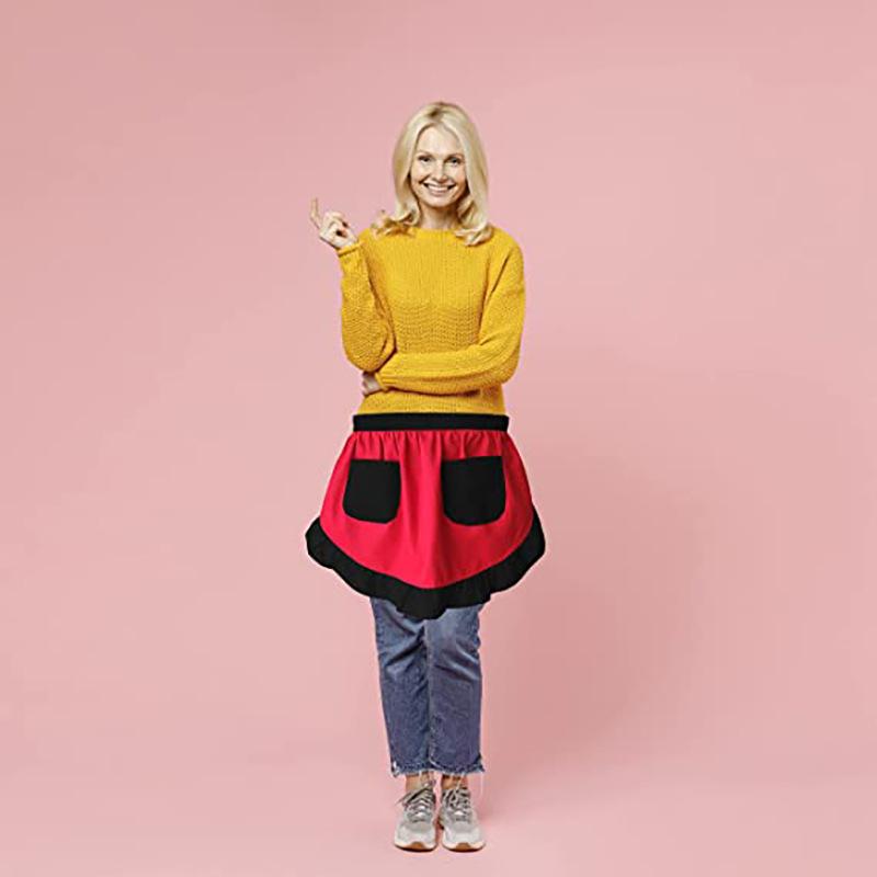Delantal de Algodón de Media Longitud Corto Contraste de Color DIY Cafetería Ropa de Trabajo Moda Lindo Lazo Encaje Delantal