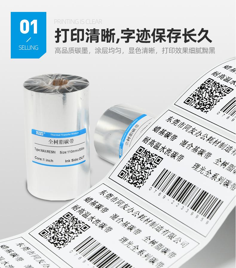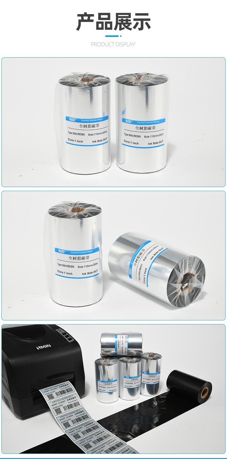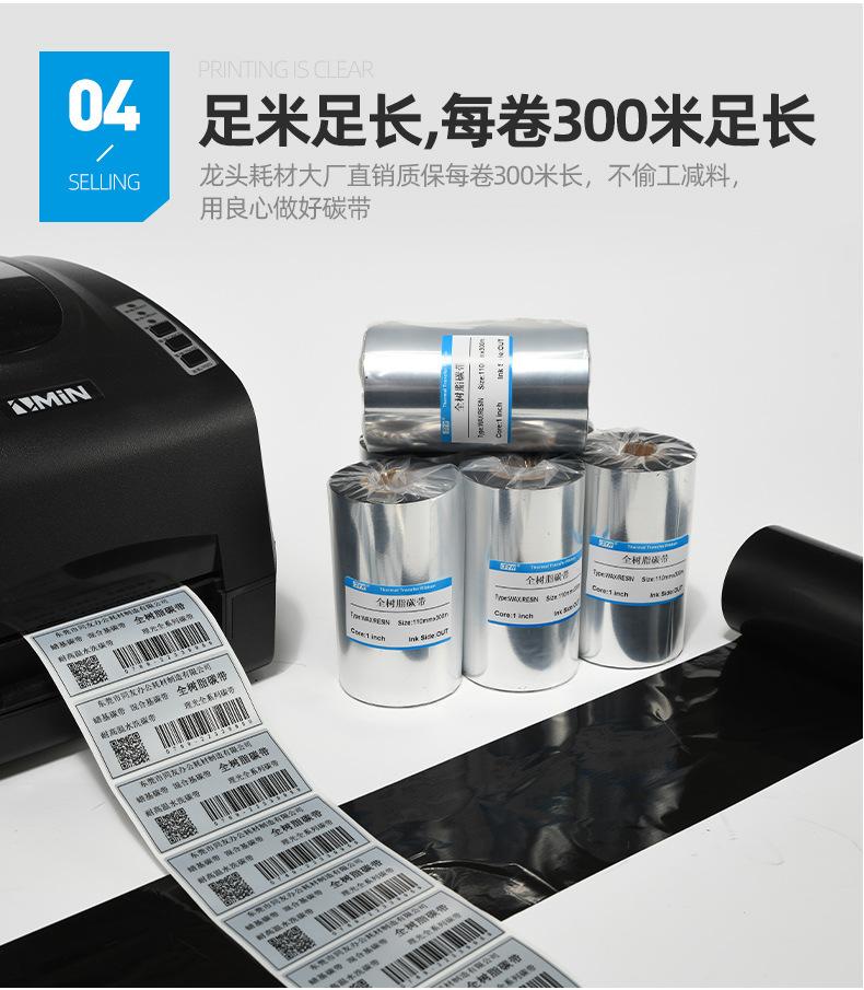 Promoción por tiempo limitado, cinta de resina completa, cinta de impresora de etiquetas de código de barras, consumibles de oficina, cinta de transferencia térmica de resina completa