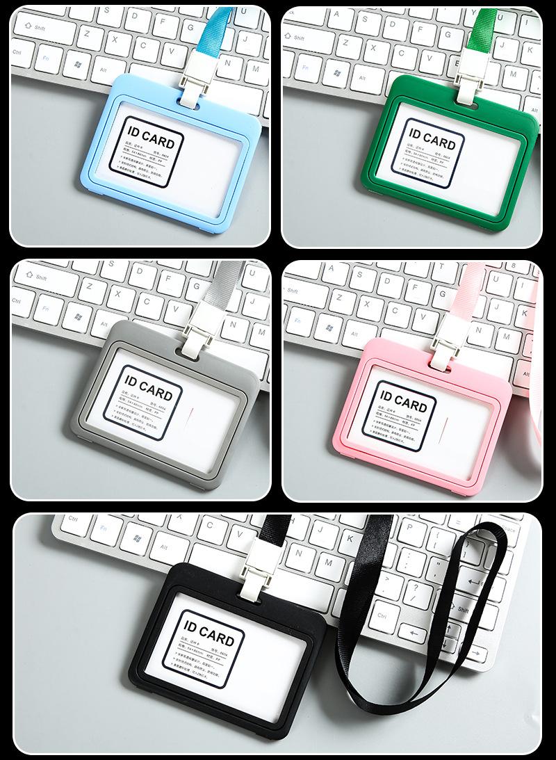 Tarjeta de trabajo con etiqueta transparente de doble cara, tarjeta de pecho, juego de tarjetas de plástico, tarjeta de trabajo de exposición, tarjeta de certificado, juego de cordón para personal, etiqueta