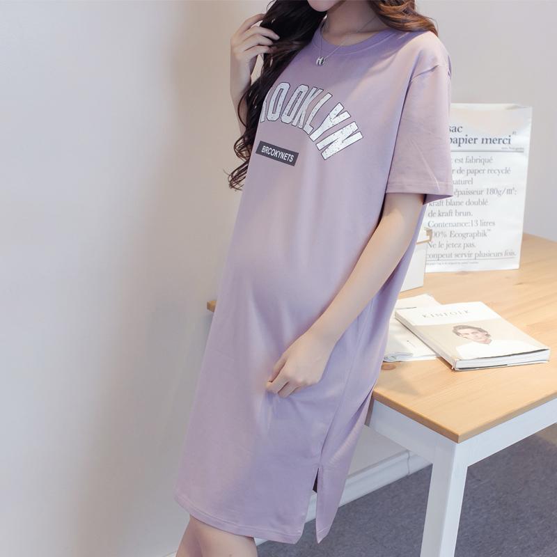 Vestido de verano para embarazadas, talla grande, holgado, coreano, de manga corta, camiseta larga, novedad de 2023, top y falda de verano