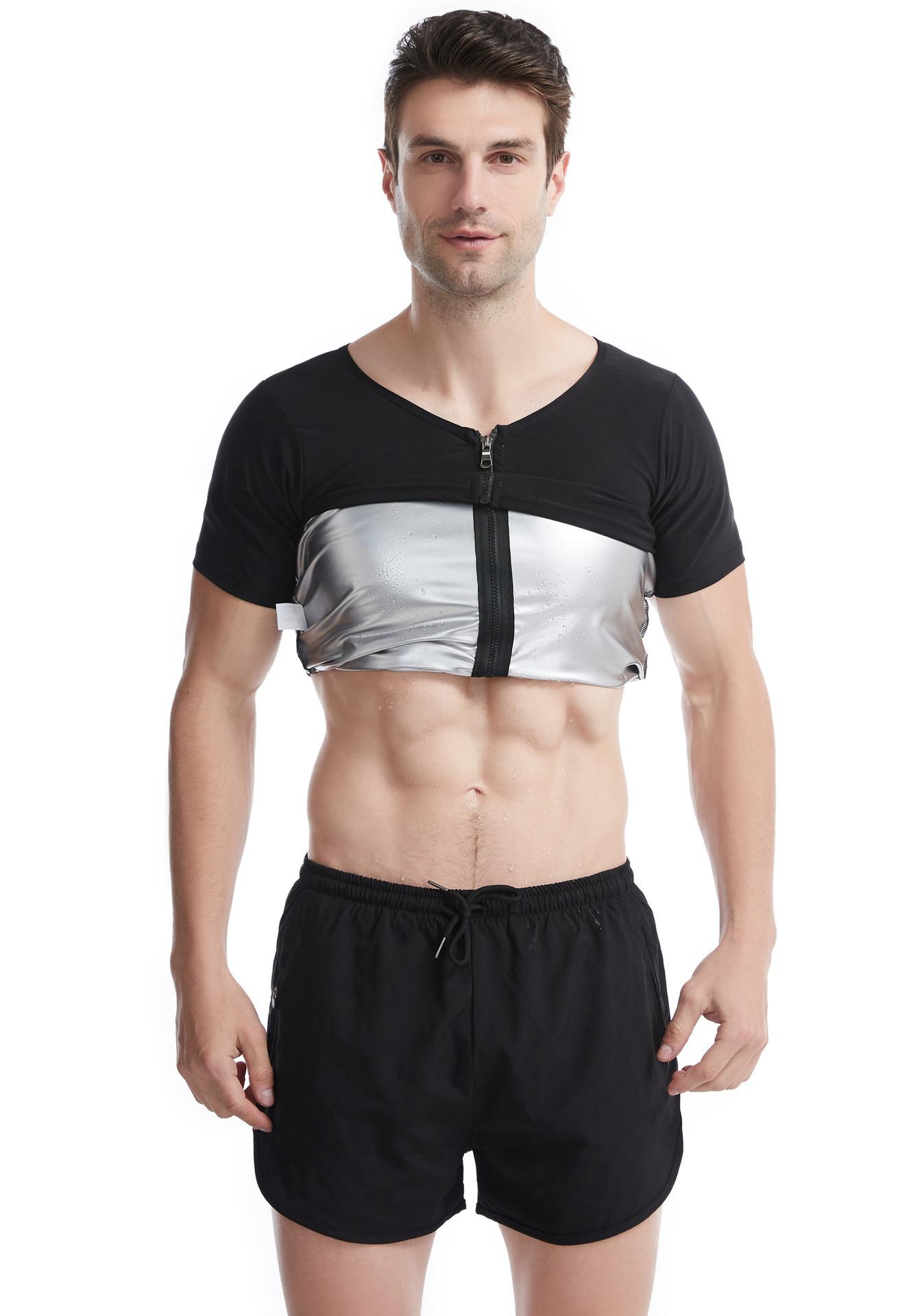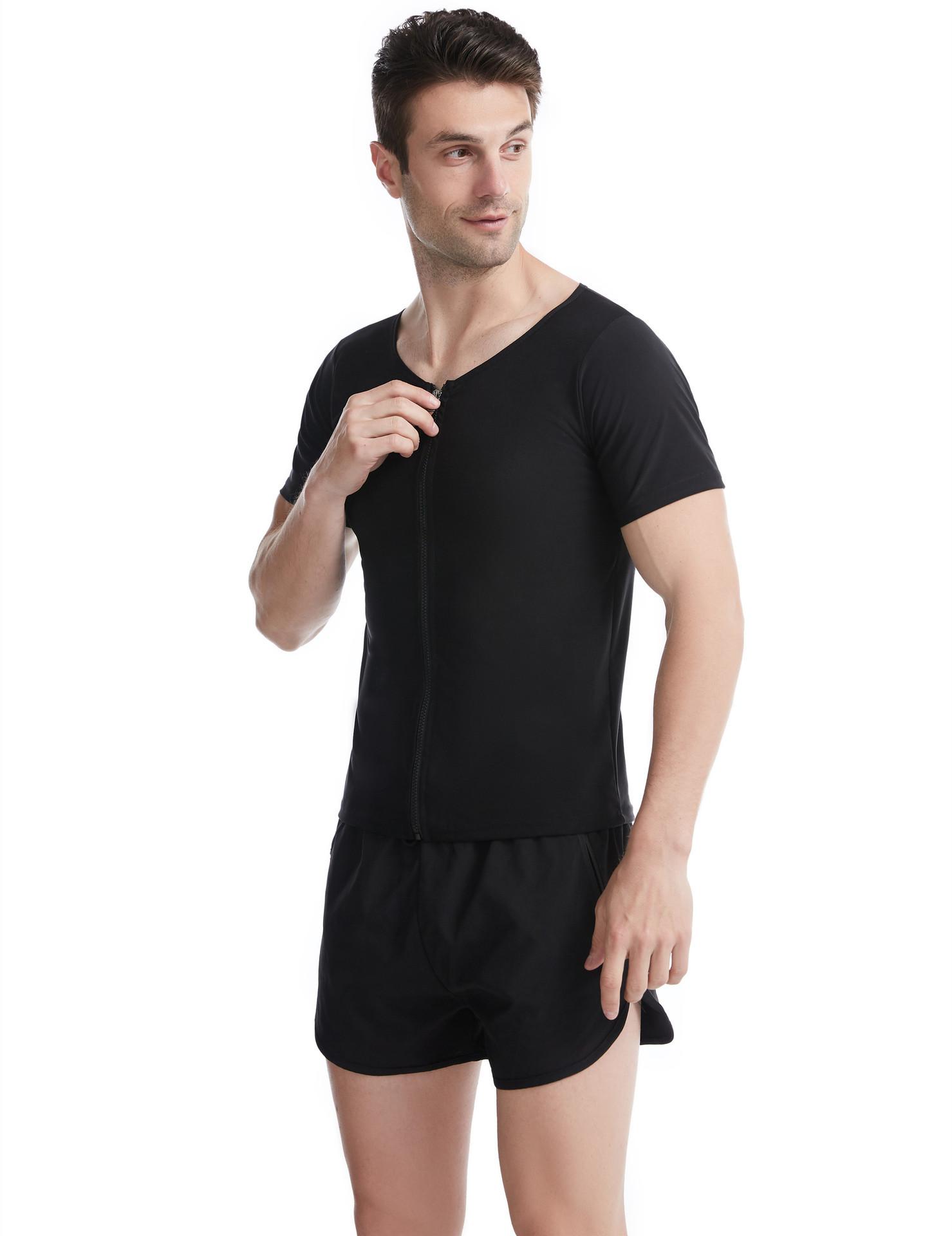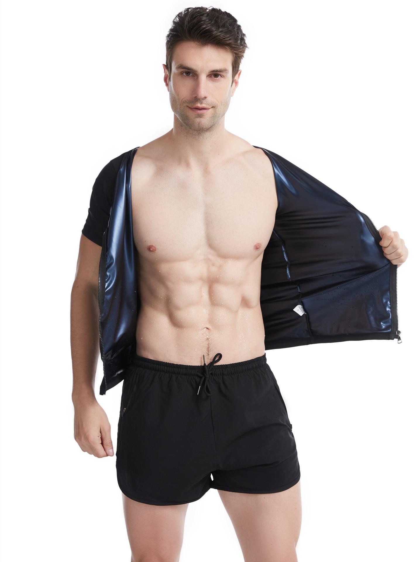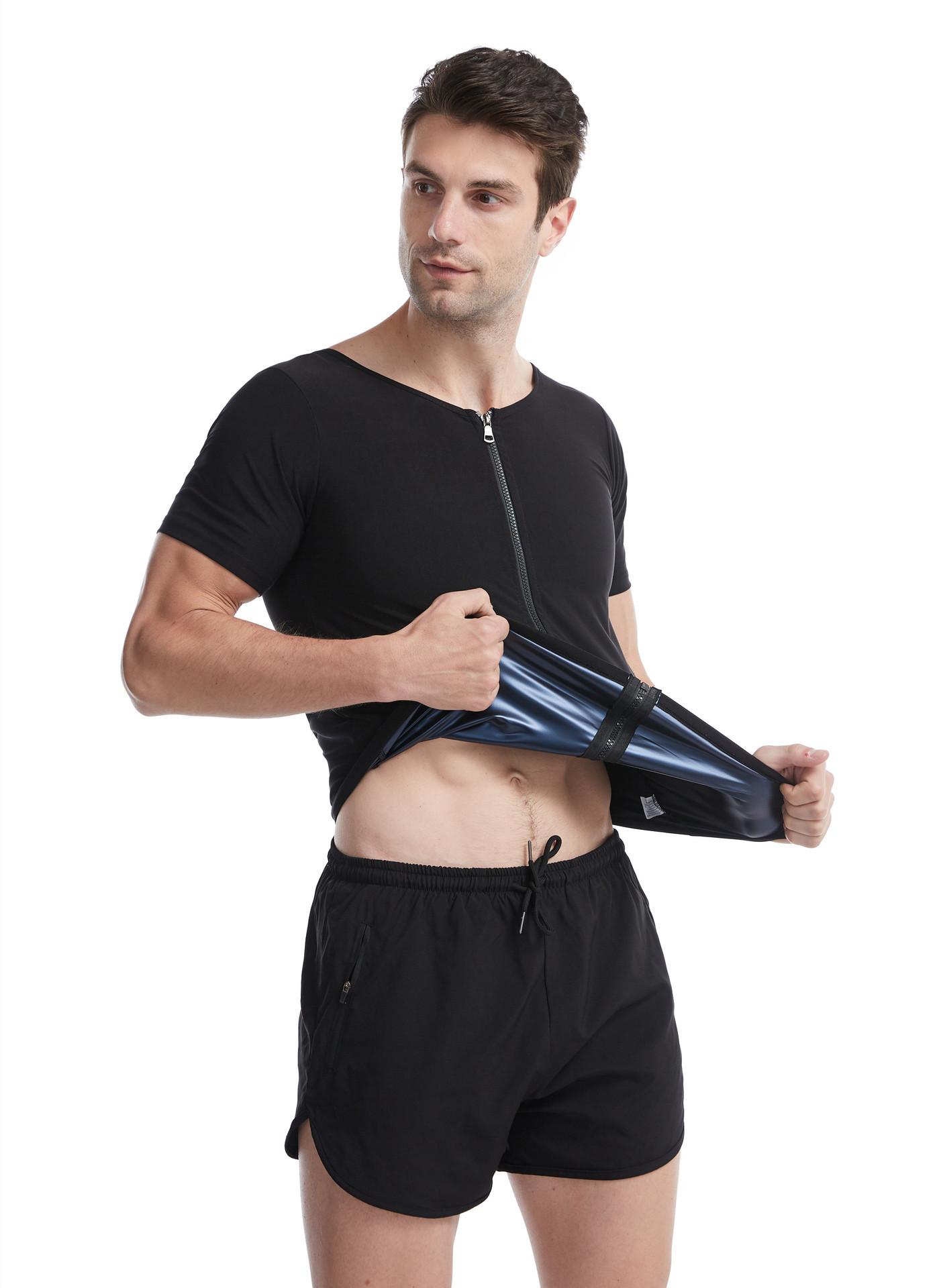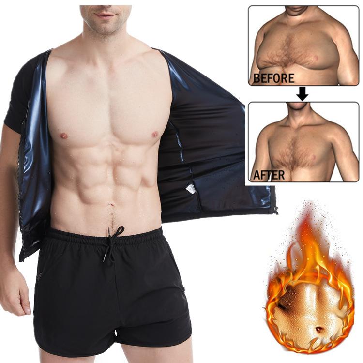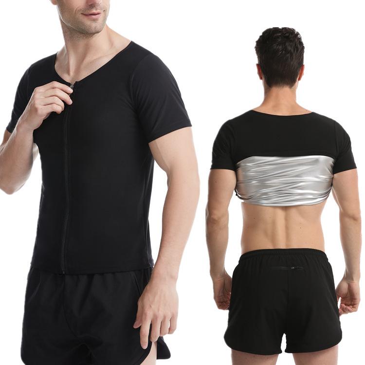 Nuevo Chaleco Deportivo de Sudor para Hombre Transfronterizo de Manga Corta para Fitness y Moldeado Abdominal Talla Europea y Americana Corsé con Cierre