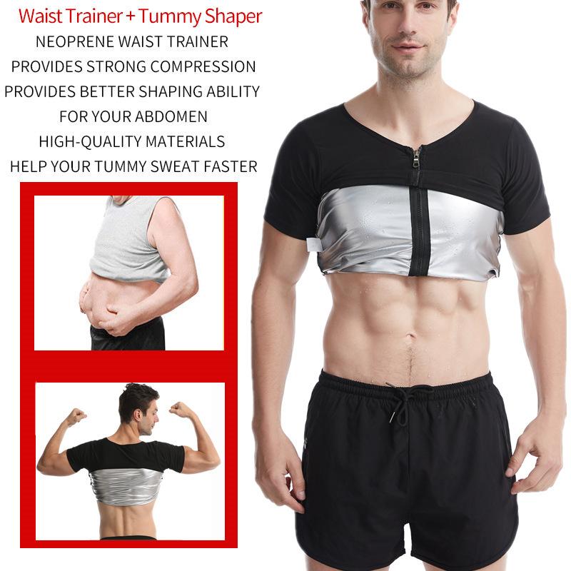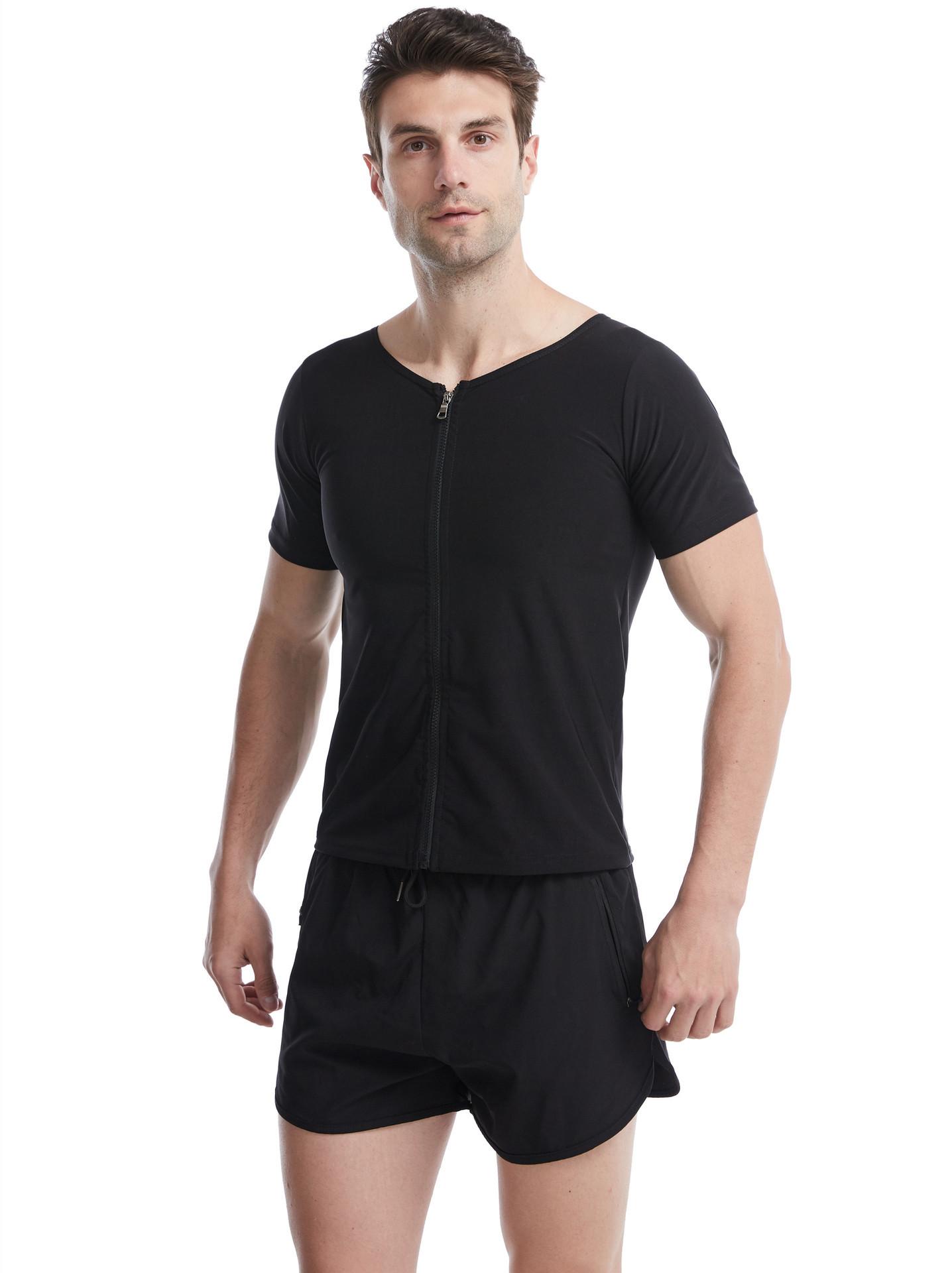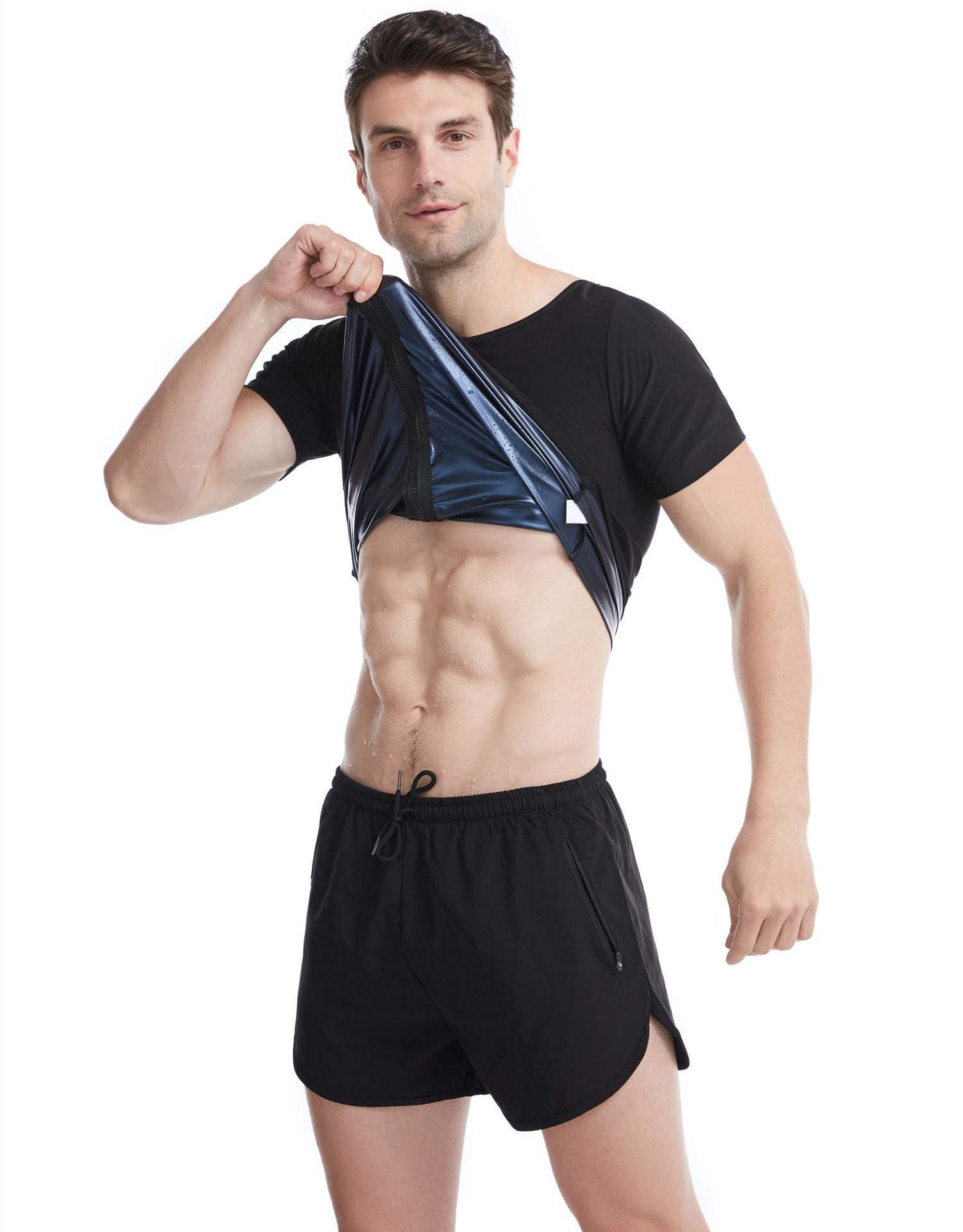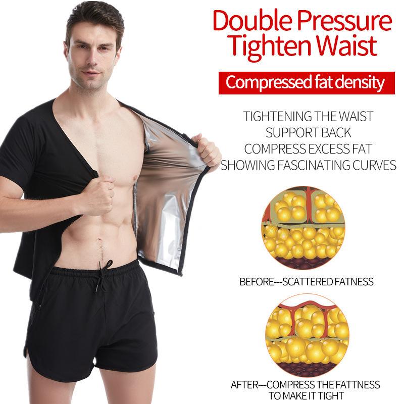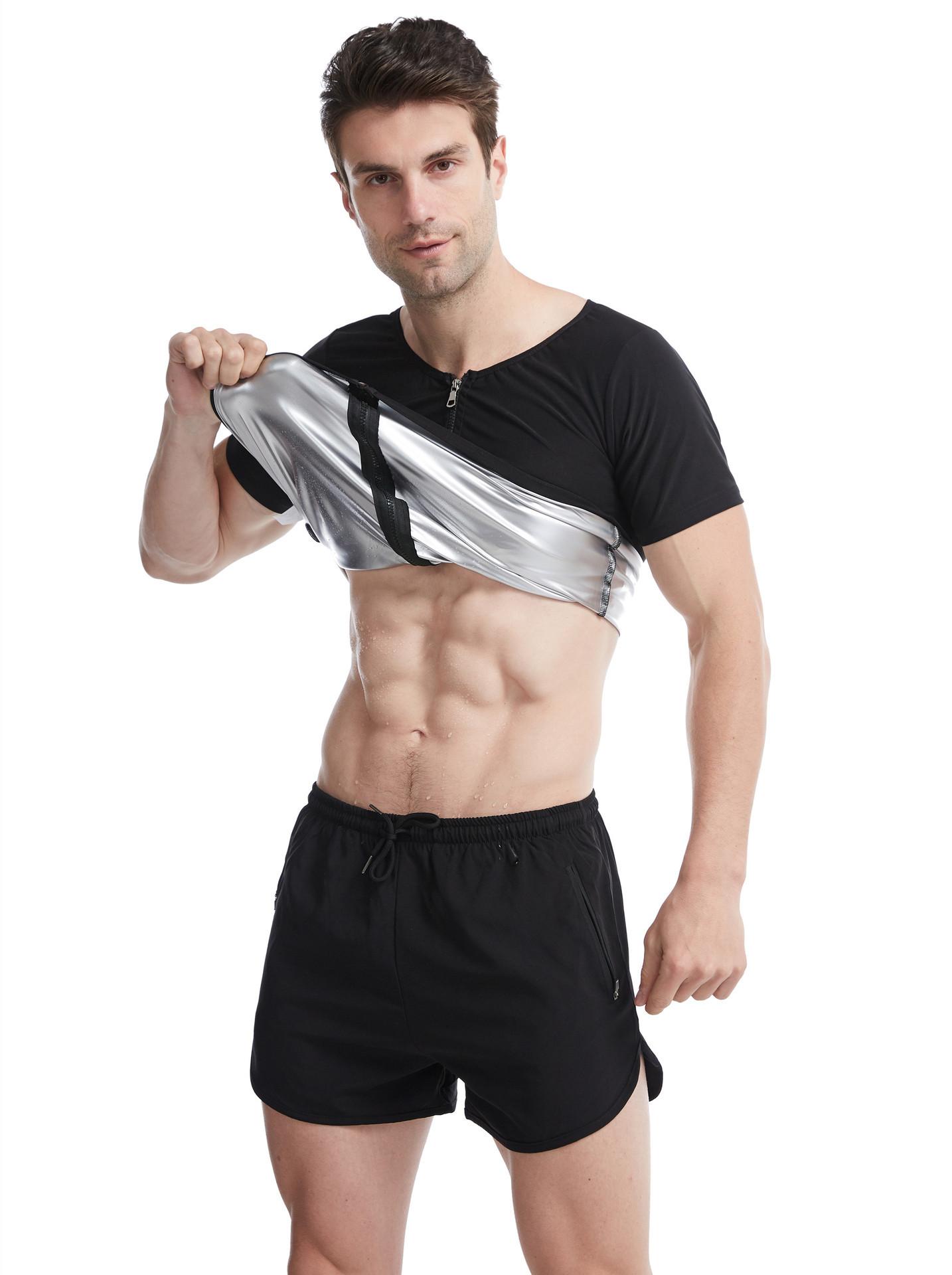 Nuevo Chaleco Deportivo de Sudor para Hombre Transfronterizo de Manga Corta para Fitness y Moldeado Abdominal Talla Europea y Americana Corsé con Cierre