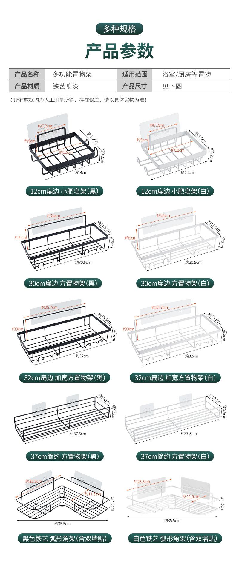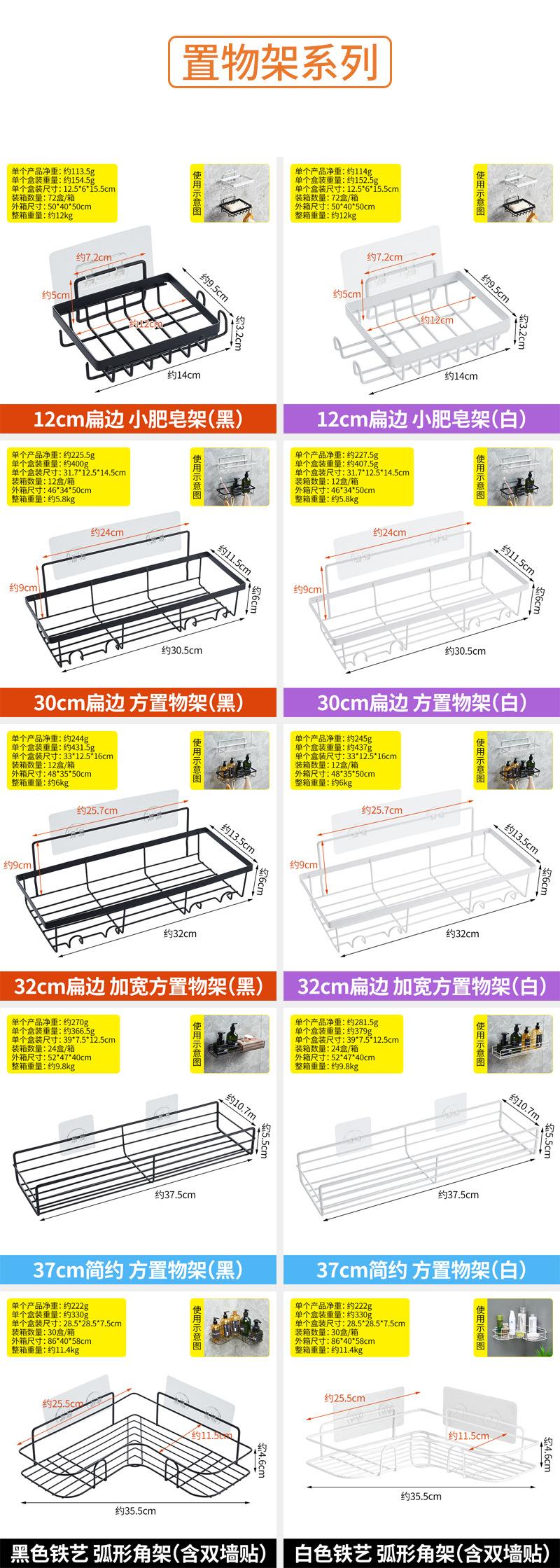 12cm flat edge small soap rack (white), Black iron curved corner frame (including double wall stickers), 30cm ...