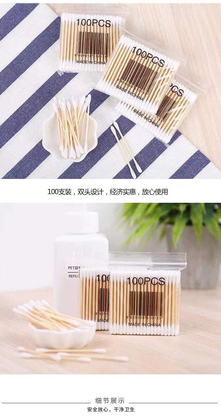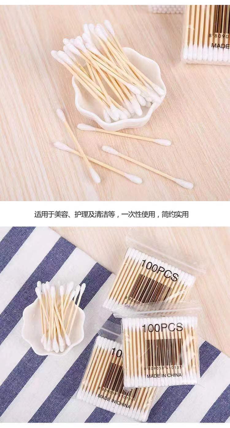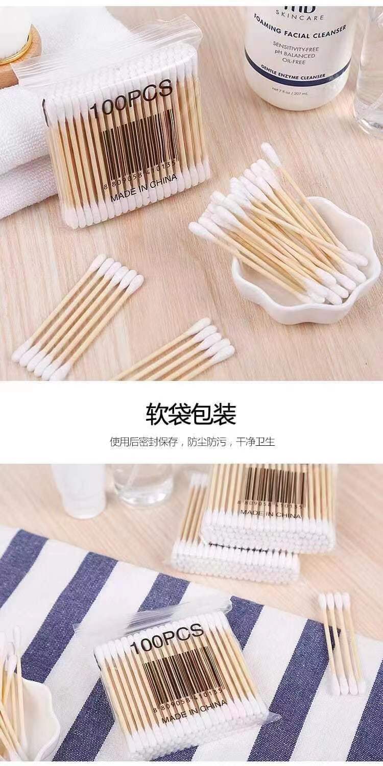 100 Bolsas de Hisopos de Algodón, Algodón Limpiador Sanitario Desechable de Doble Extremo, Desmaquillante Doméstico, Limpieza de Oídos, Portátil al por Mayor