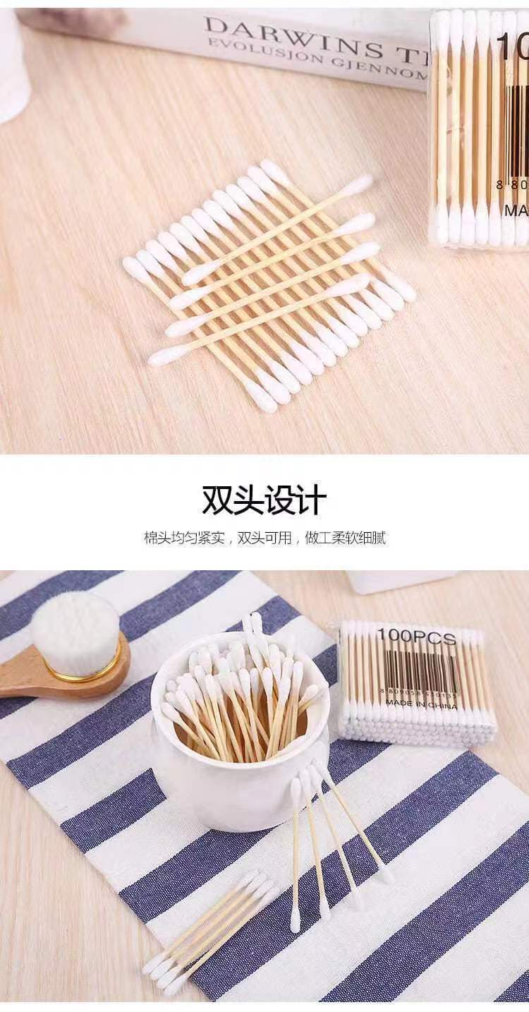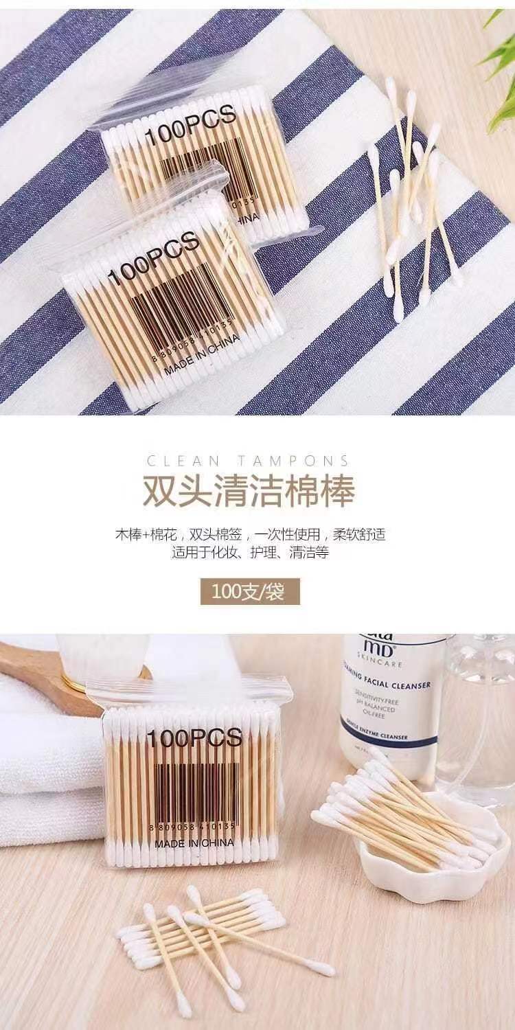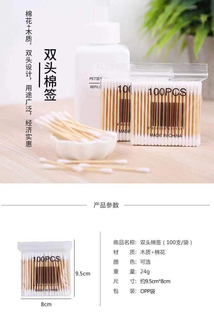 100 Bolsas de Hisopos de Algodón, Algodón Limpiador Sanitario Desechable de Doble Extremo, Desmaquillante Doméstico, Limpieza de Oídos, Portátil al por Mayor