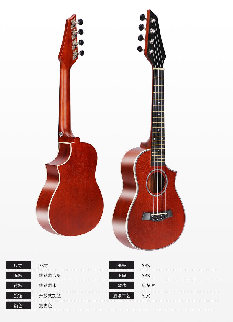 23 inch-ukulele [electric guitar head-missing angle] retro color