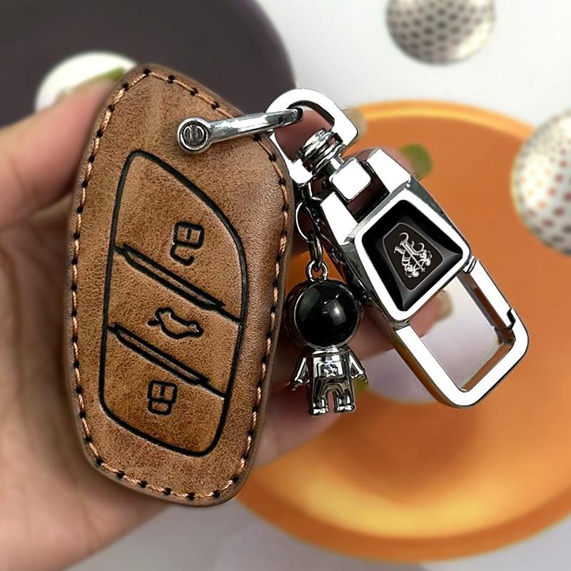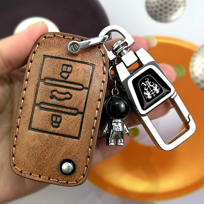 Rongwei A "fashion gray" leather + keychain + metal silver astronauts, Rongwei A [Brown] leather case + key ch...