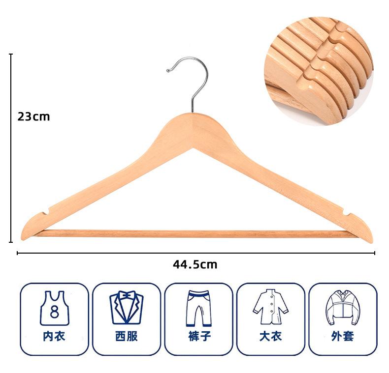 Amazon Transfronterizo Madera Maciza P66 Percha para Ropa de Hotel Color Natural Retro Madera Antideslizante Sin Marcas Soporte para Ropa Percha de Madera