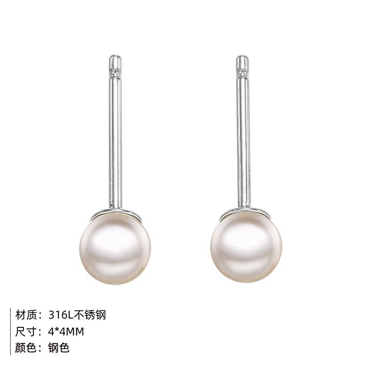 [Nombre] Pendientes sencillos de perlas de imitación para mujer, pendientes de acero inoxidable.