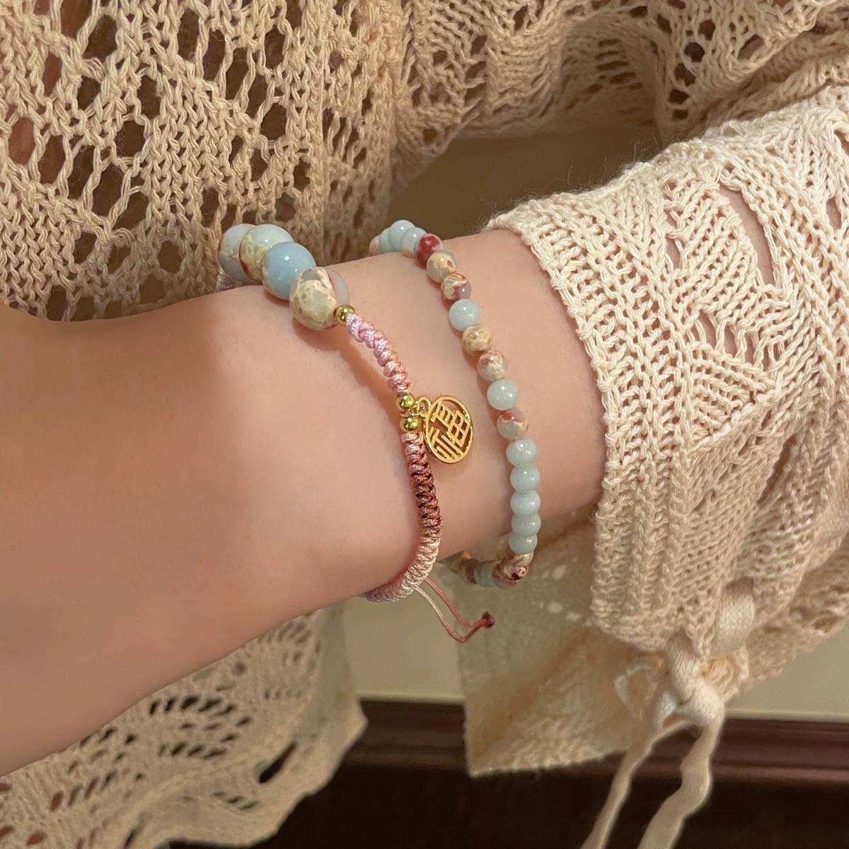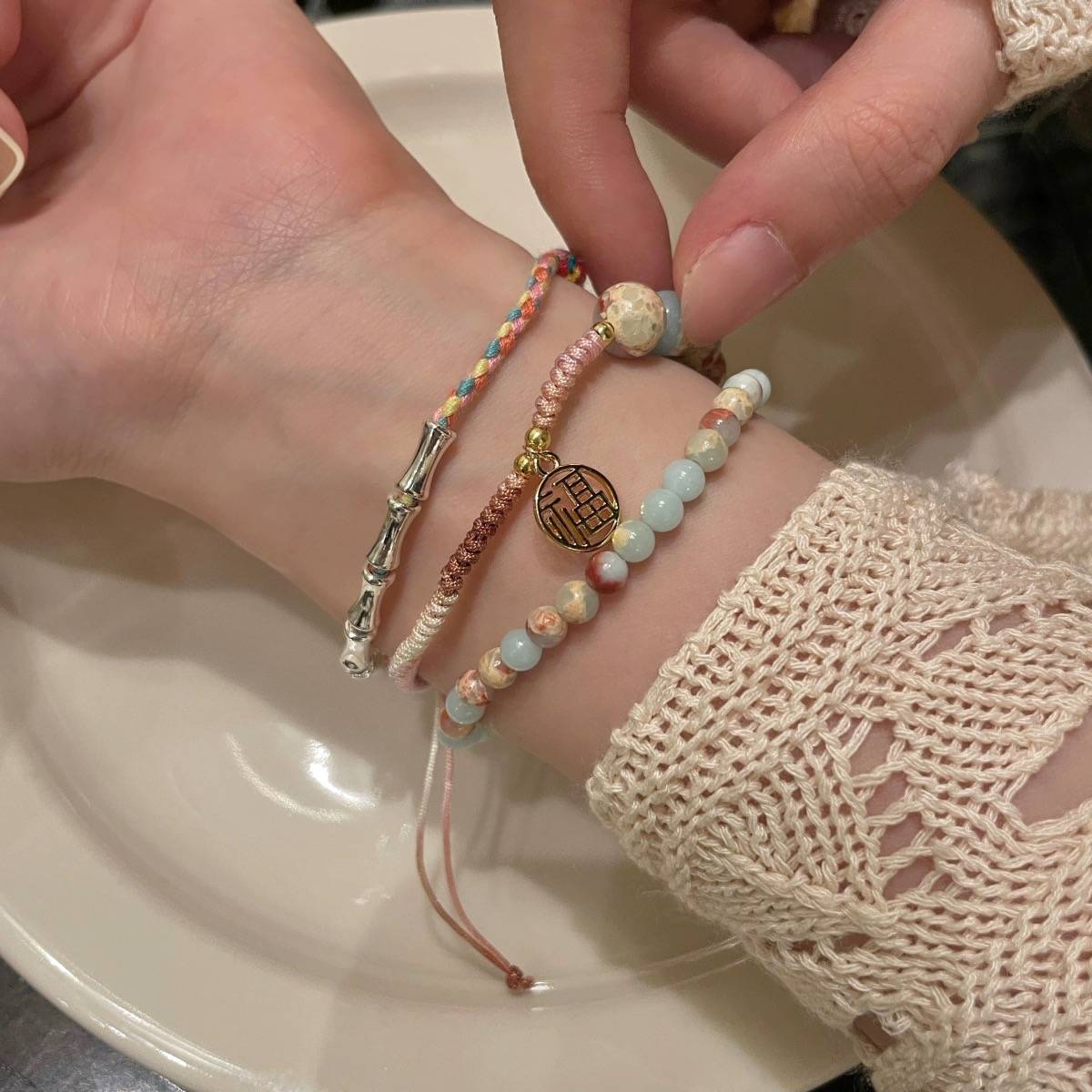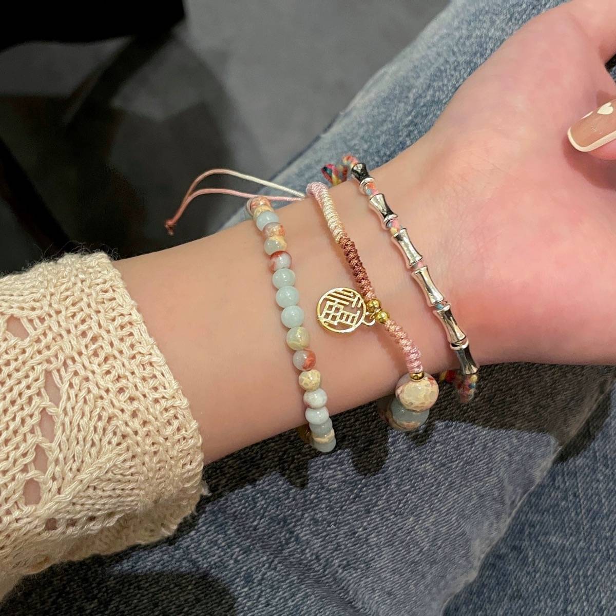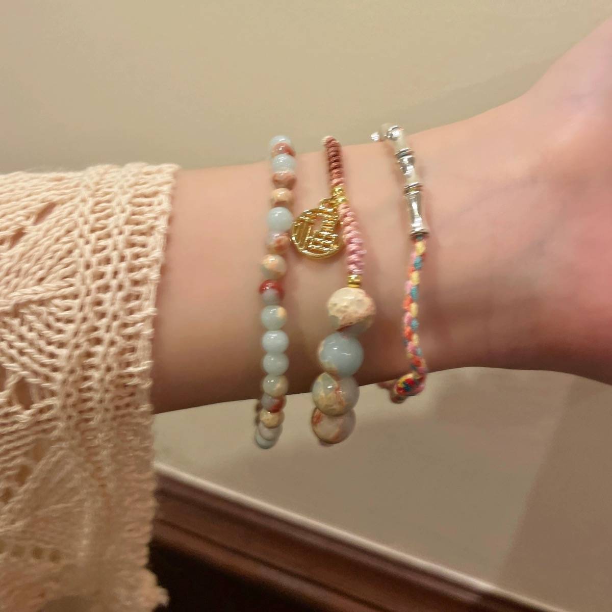 Slub colored woven bracelet, Shoushan Stone Beaded Bracelet, Shoushan Stone Woven