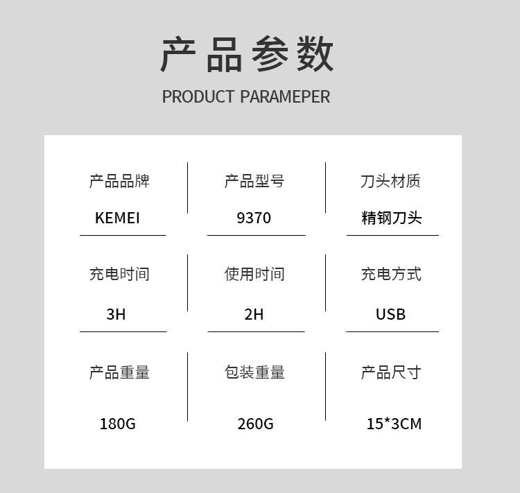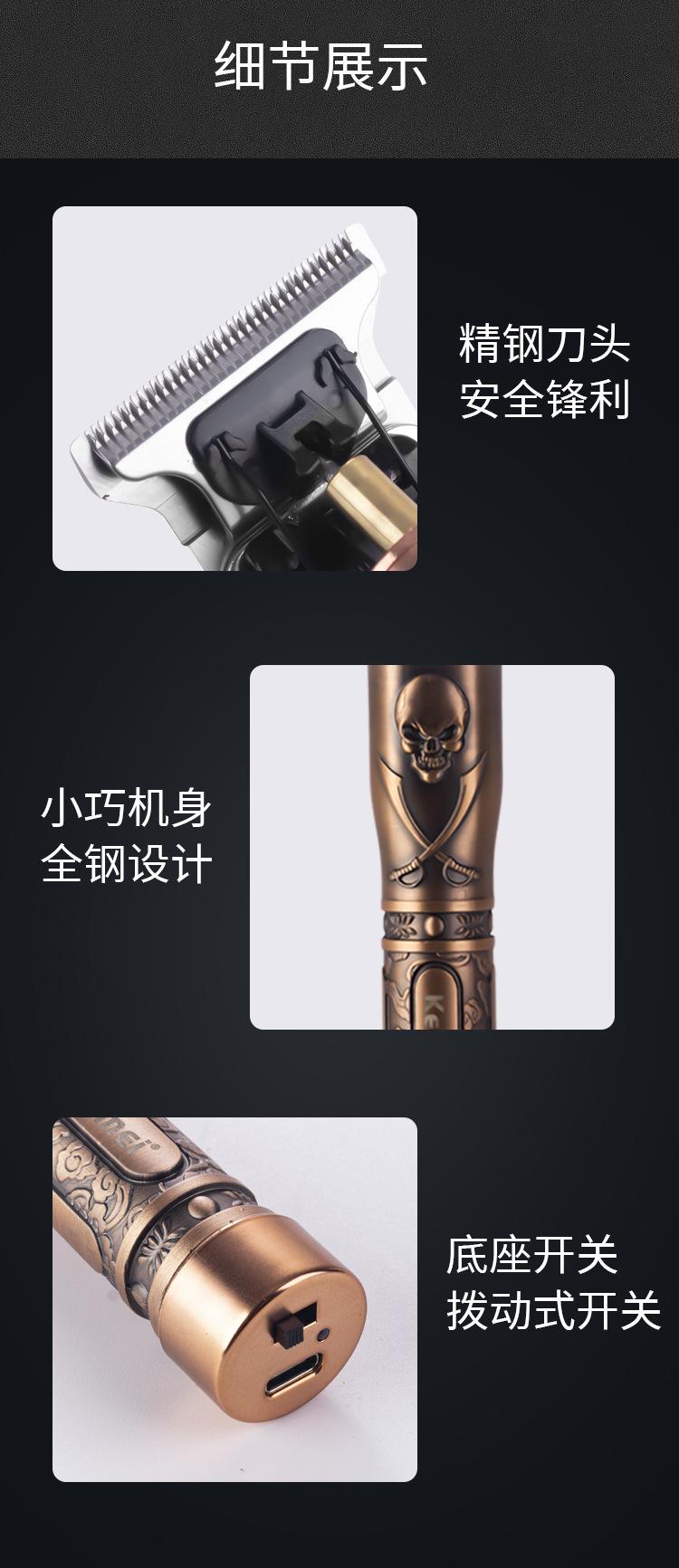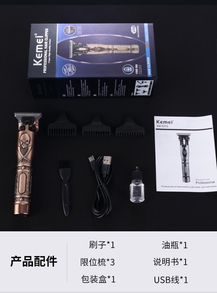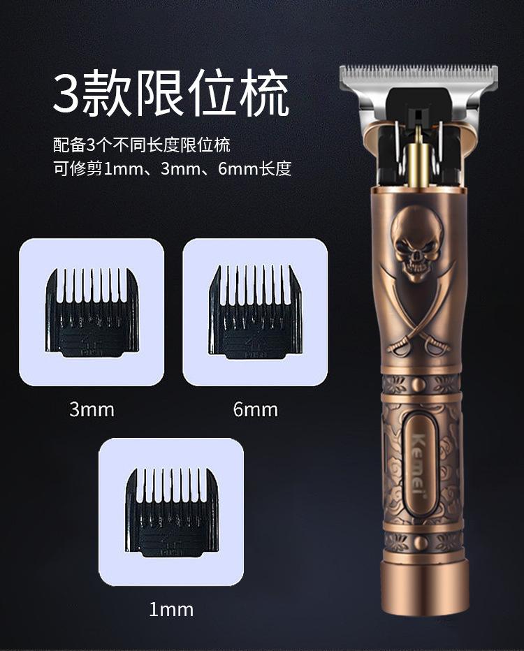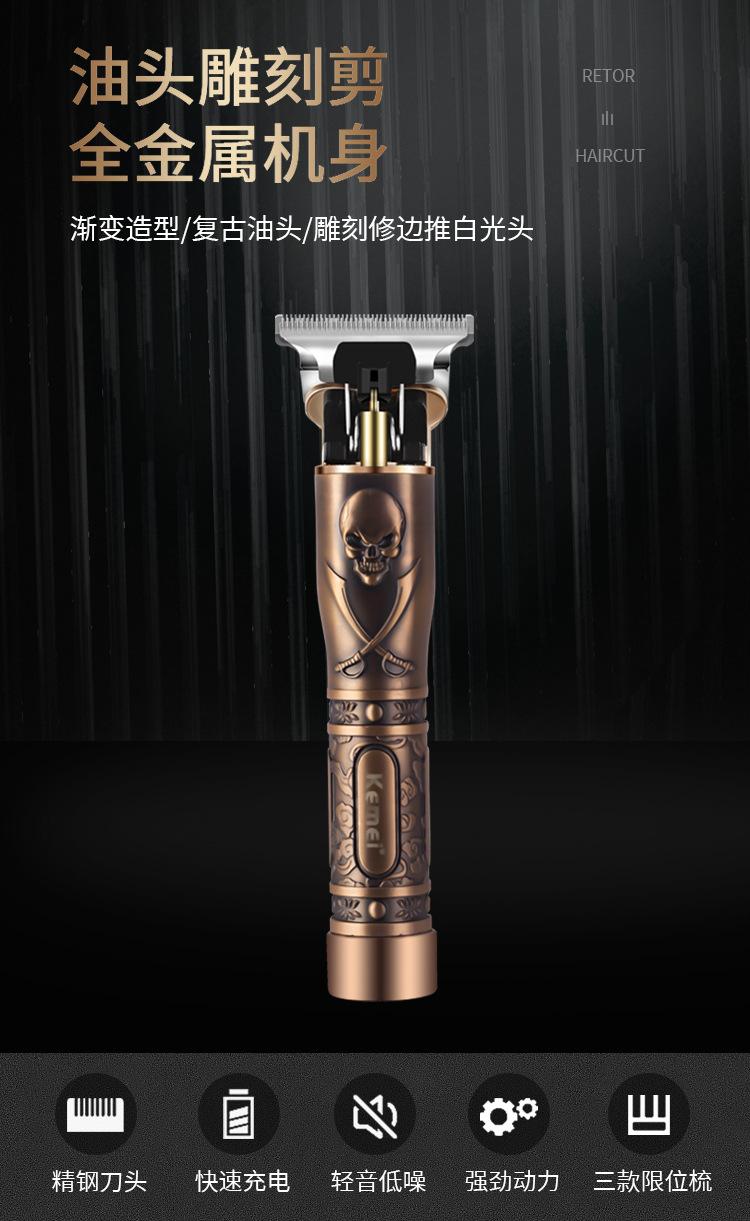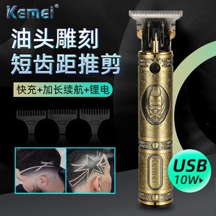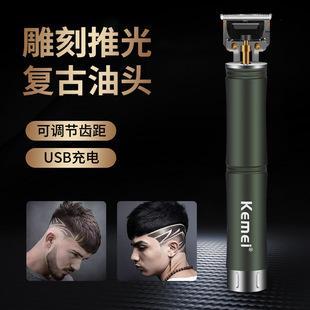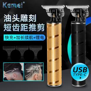 Cortadora de pelo Kemei transfronteriza con cuerpo totalmente metálico, cabezal de aceite tallado, cortadora eléctrica, afeitadora recargable, peluquería, empuje especial