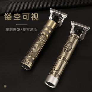 Cortadora de cabello retro con cabezal de aceite grabado, cuerpo de cabezal hueco y cortadora eléctrica de peluquería profesional bellamente grabada, carga USB