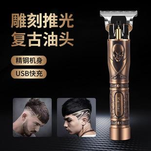 Cortadora de pelo eléctrica con cabezal de aceite grabado, cuchilla hueca, carga USB, profesional, para peluquería