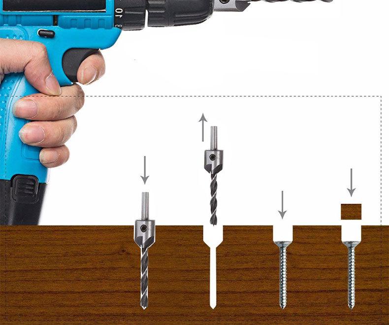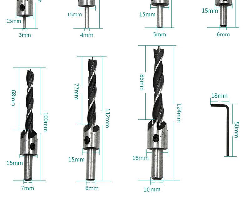 Nombre del producto: Broca avellanadora de carpintería de tres puntos, broca avellanadora para madera