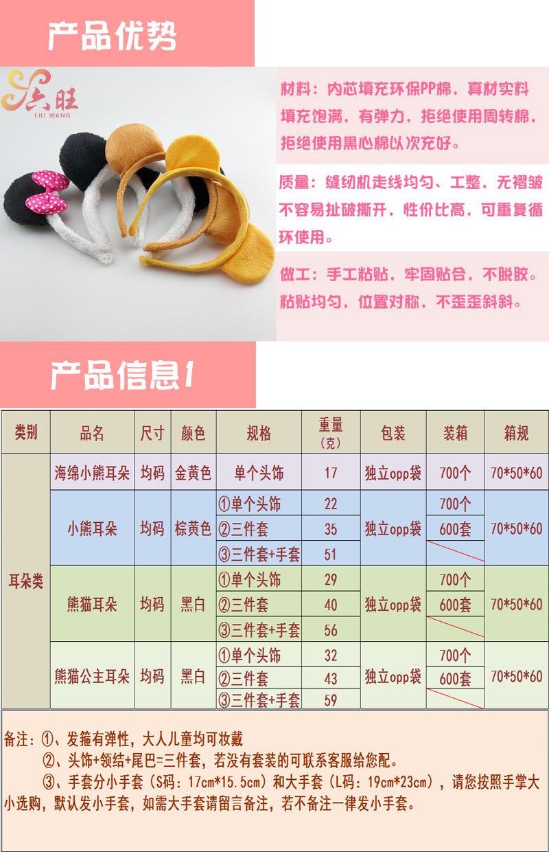 Padded gold yellow bear ears, Brown Bear Ears, Brown Bear Ears Three-Piece Set, Brown Bear Ears Three-Piece Gl...