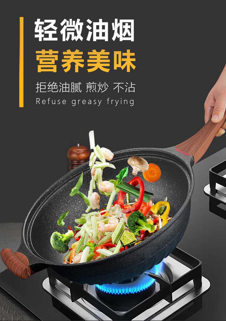 Sartén antiadherente Maifan Stone para wok, cocina de inducción, para cocina de gas doméstica, antiadherente y sin humos