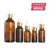 Venta al por mayor, botella de vidrio esmerilado marrón sellada, 5 ml/100 ml, botella cuentagotas para aceite esencial cosmético.