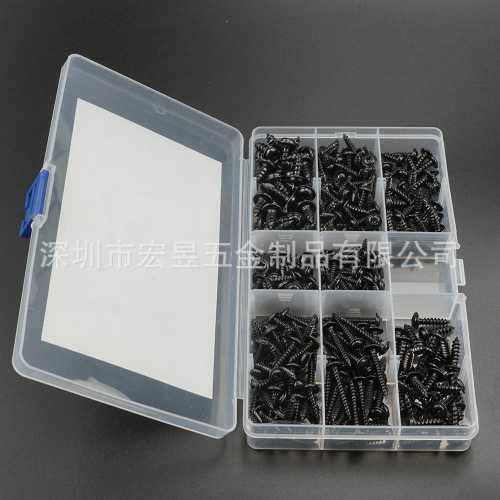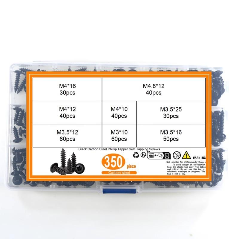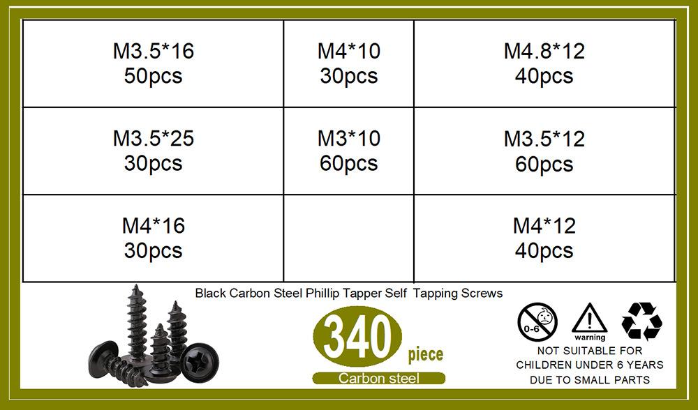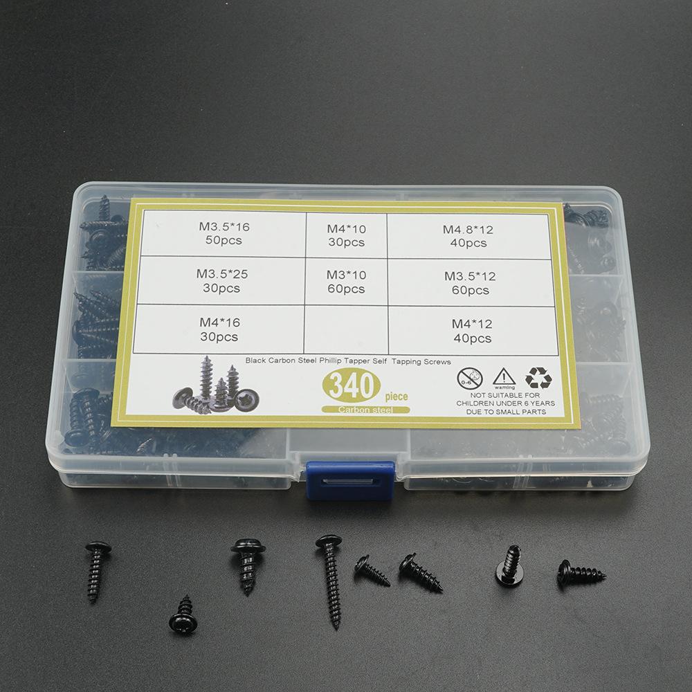 340 Piezas PWA Negro Cabeza Redonda Phillips con Arandela Autoperforante Juego en Caja M3.5-M4.8 Peso neto del producto: 390.6g