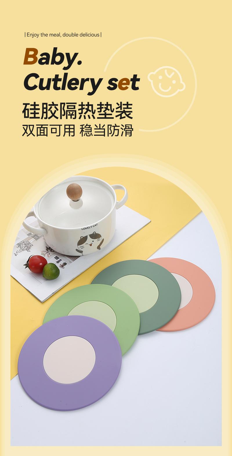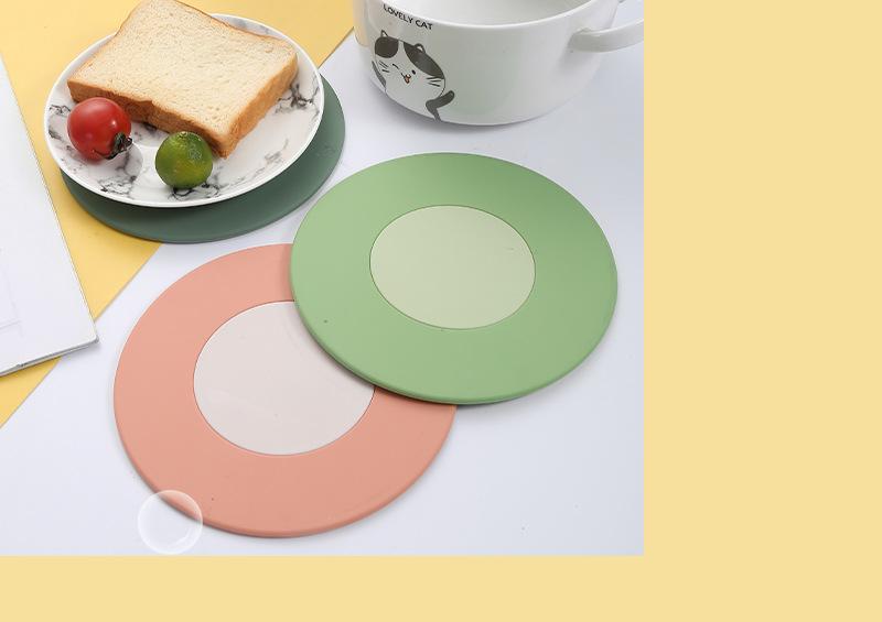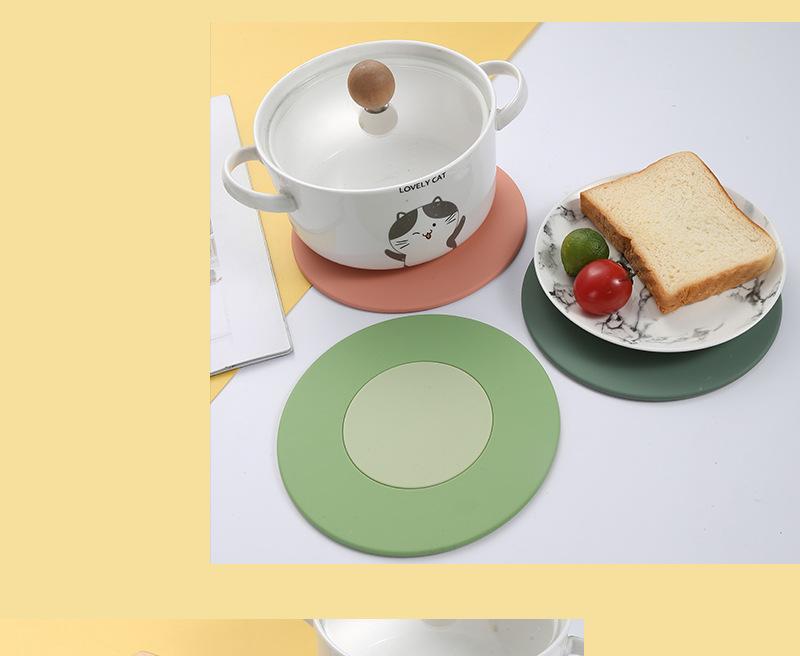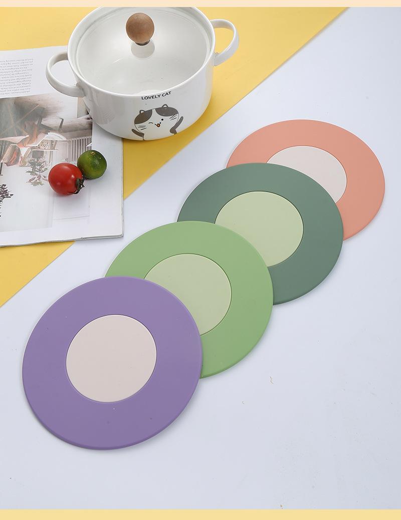 Tapete aislante de silicona para mesa, resistente a altas temperaturas, extraíble y lavable, para el hogar, tapete para ollas de arena, tapete para platos, tapete para cuencos, posavasos redondos de color en contraste.