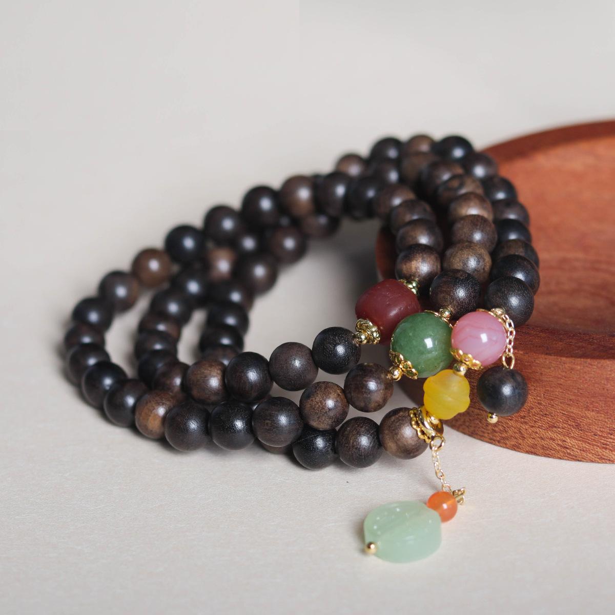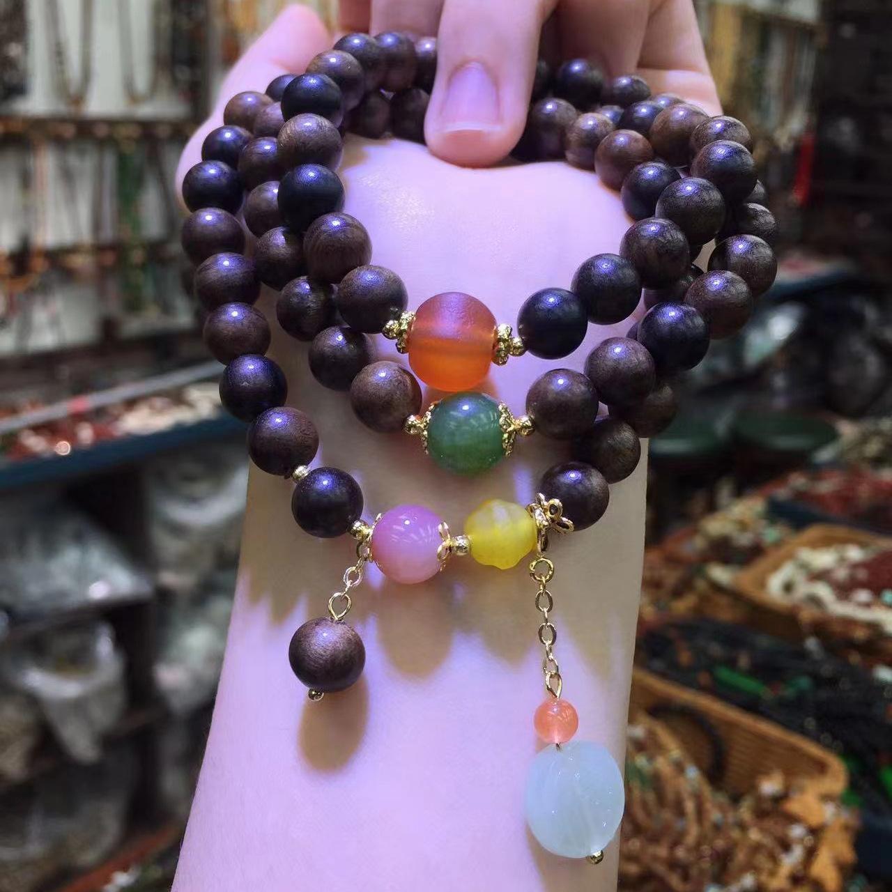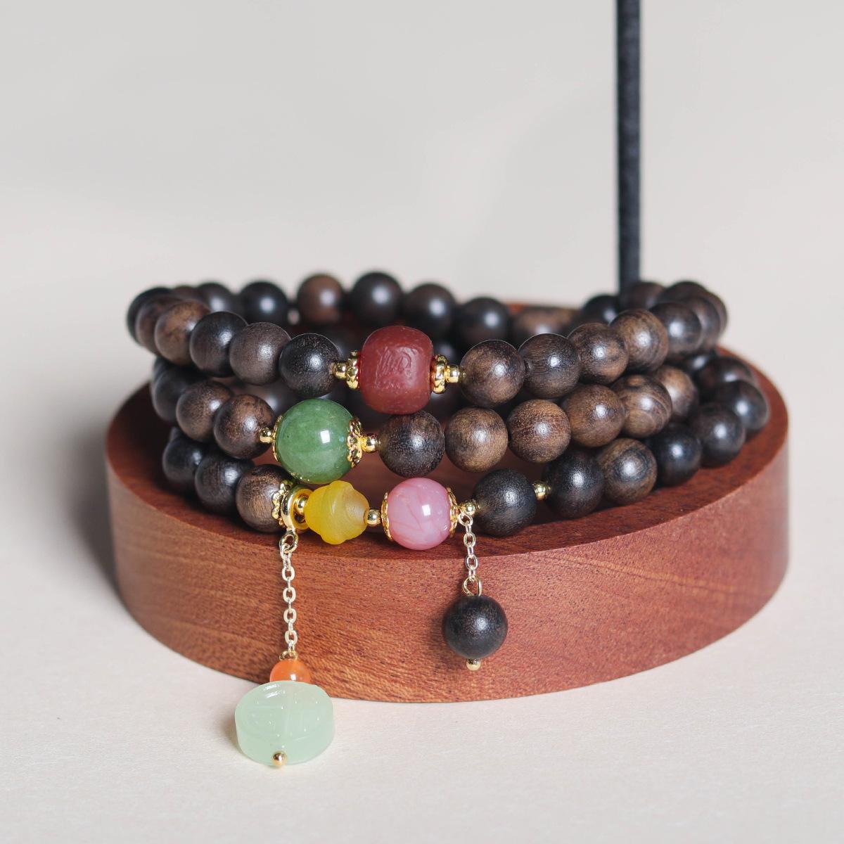 Pulsera de múltiples anillos de madera de agar al por mayor pulsera de madera de agar medicinal pulsera de ágata jade jade para mujer accesorios Wenwan joyería pulsera