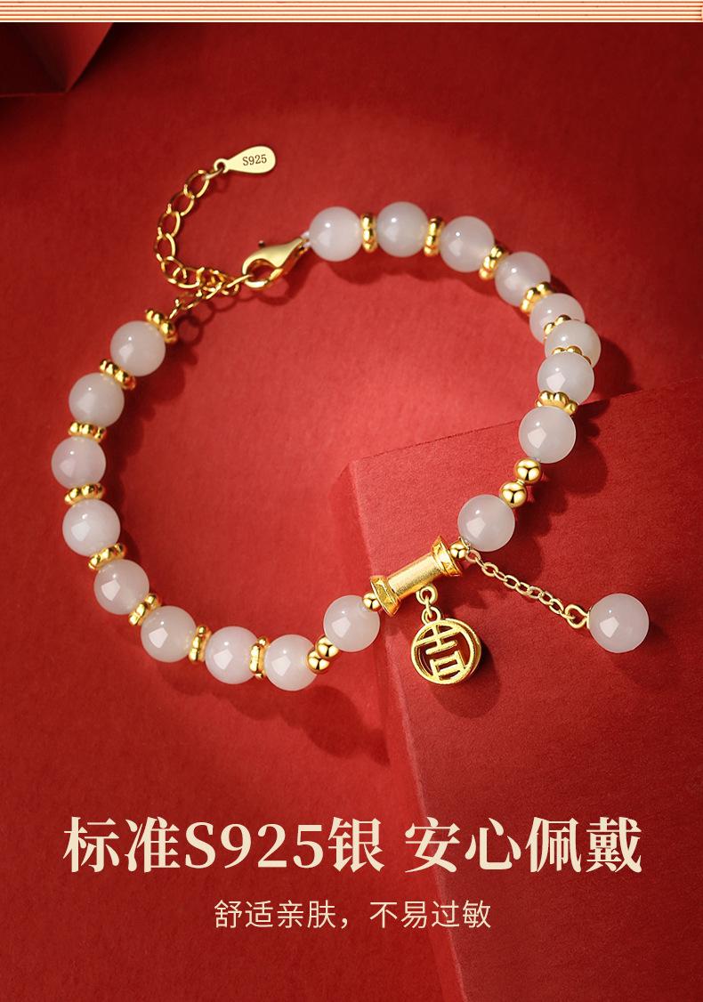 Pulsera de Plata Esterlina S925 con Jade Hetian Natural para Mujer, Pulsera de Carácter de la Suerte de Diseño, Joyería de Lujo Ligero de Tendencia Nacional de Nuevo Estilo Chino