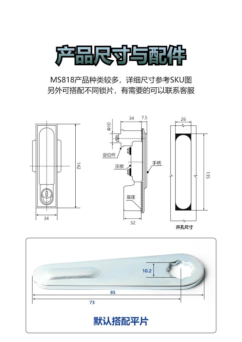 Ms818/Ms490 Cerradura Universal para Puerta de Gabinete de Interruptores, Caja Eléctrica, Cerradura para Gabinete Eléctrico, Cerradura Plana, Cerradura para Puerta de Acero Inoxidable, Cerradura para Caja de Distribución