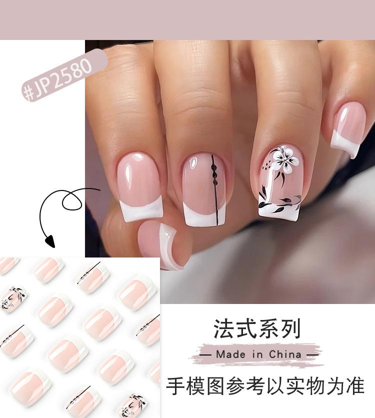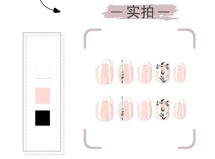 Armadura al por mayor, flor francesa blanca, hoja negra, uñas cortas, uñas a presión