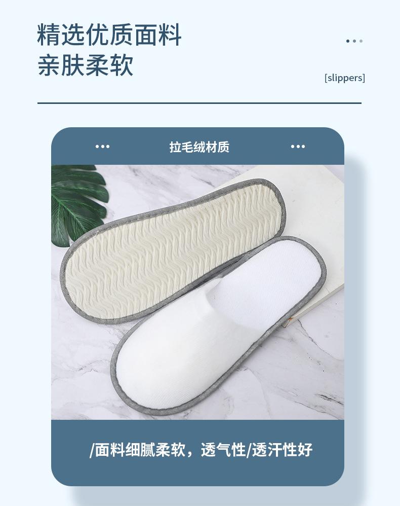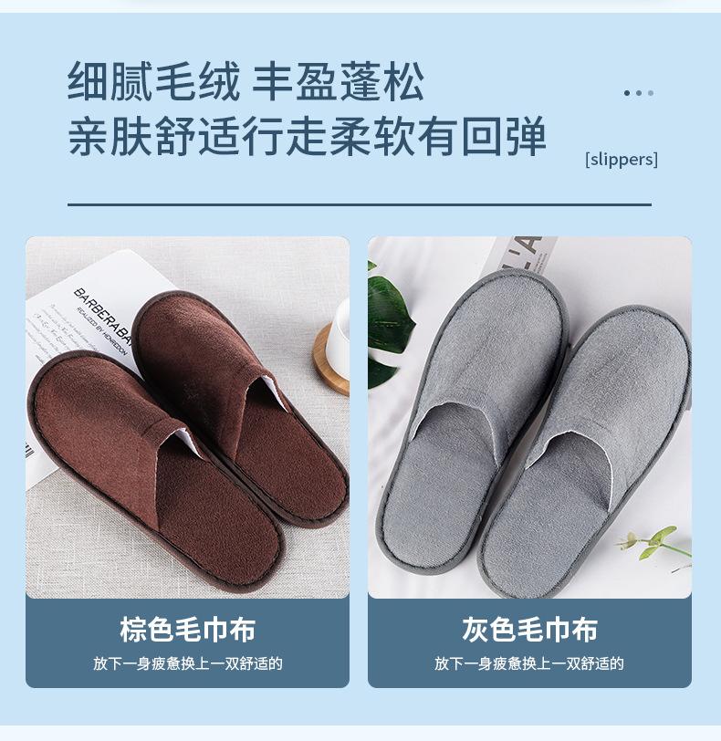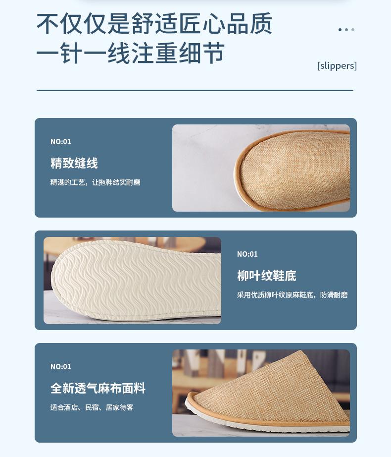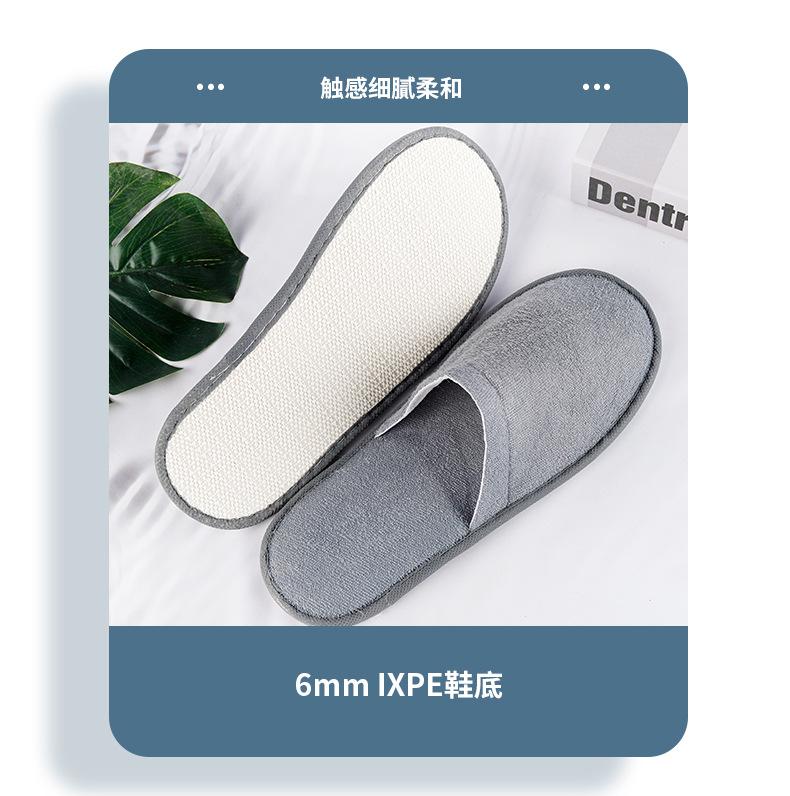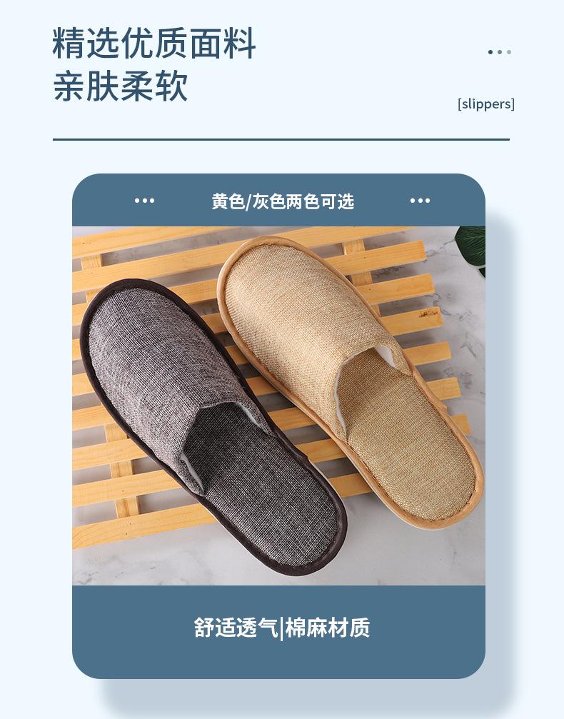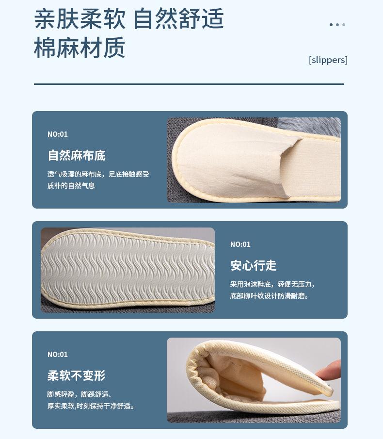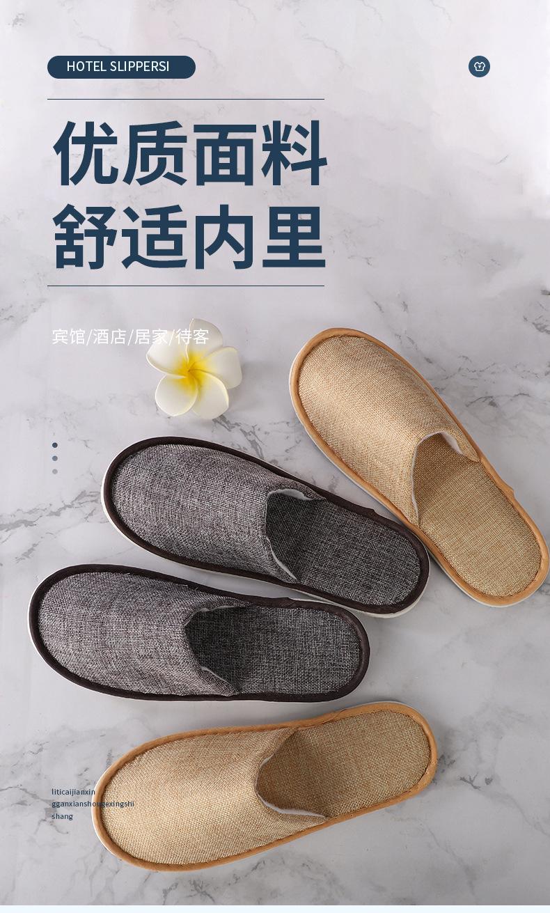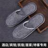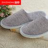 Pantuflas desechables de felpa de lino para hotel, para alojamiento familiar, para el hogar, antideslizantes, gruesas, con logotipo impreso.
