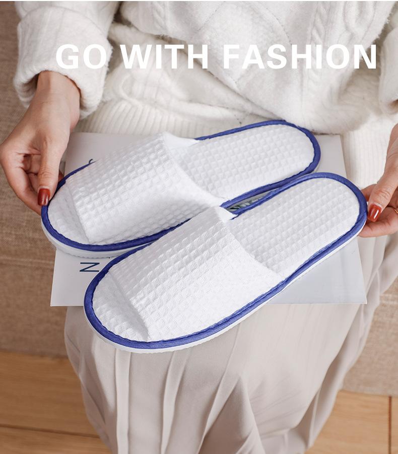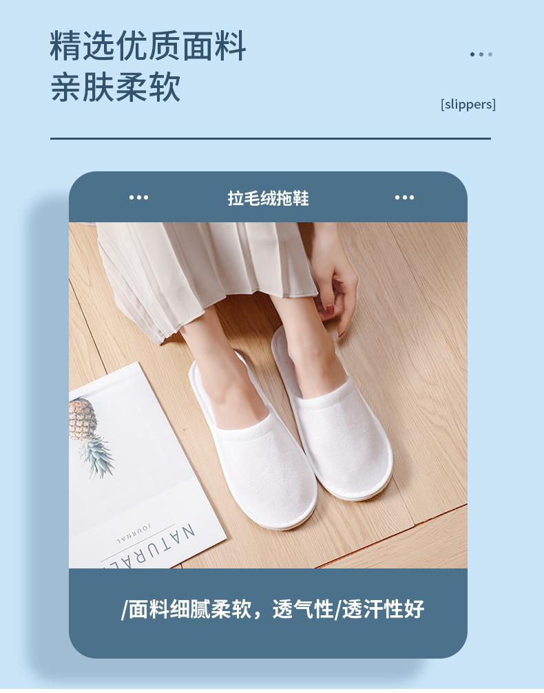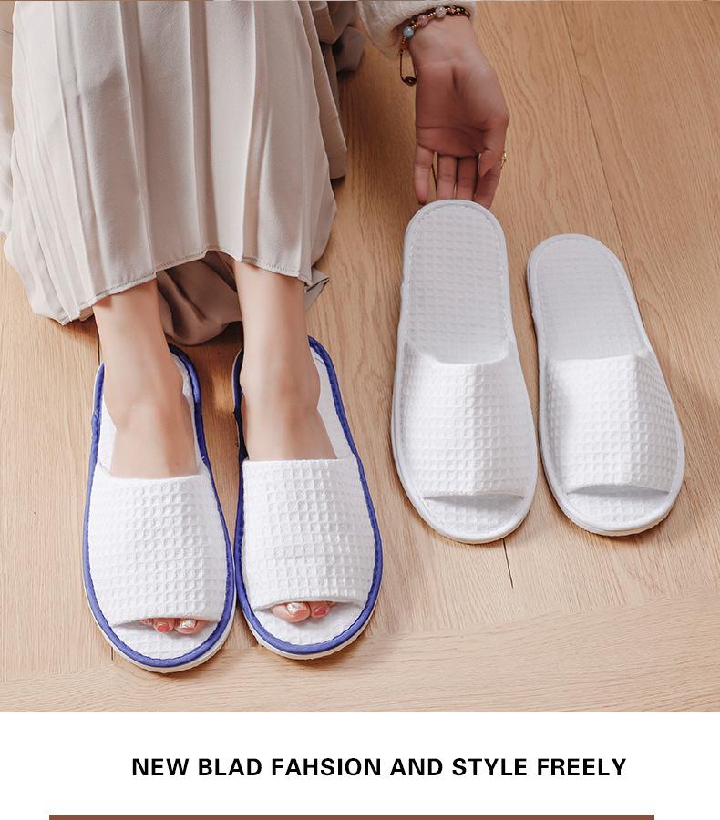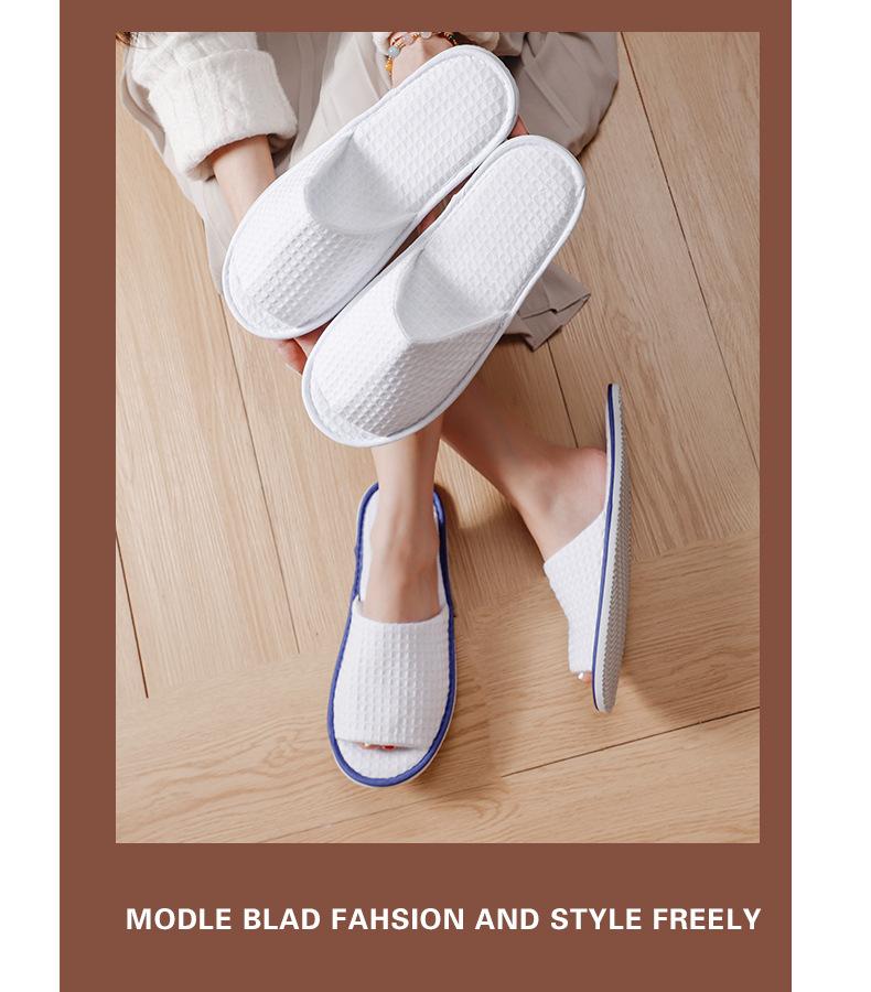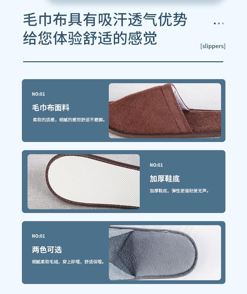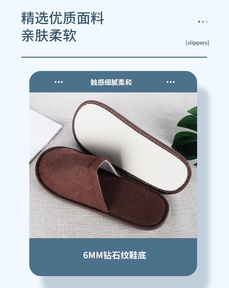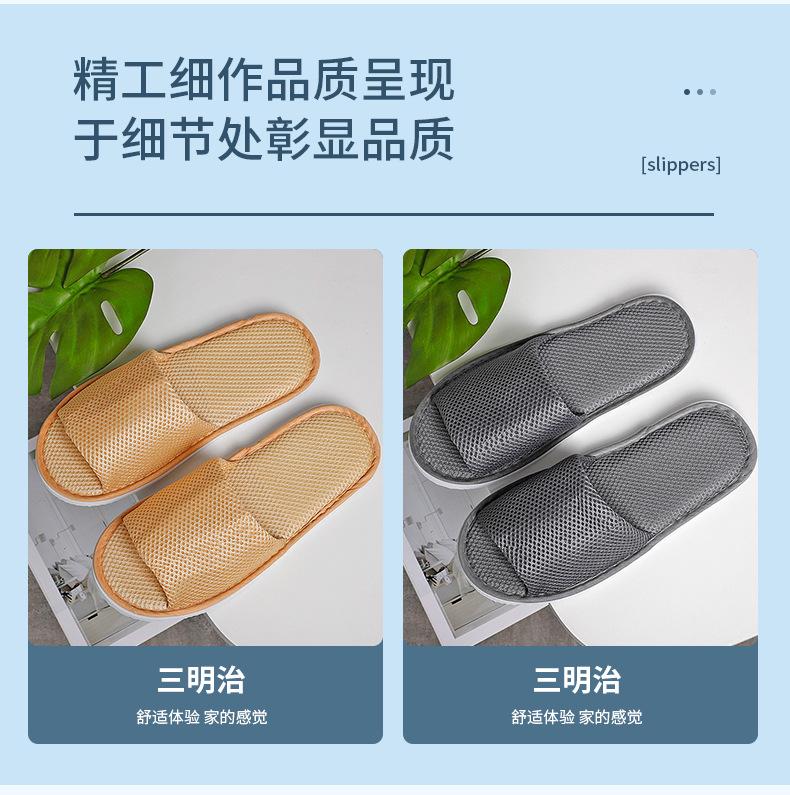 Pantuflas desechables de felpa de lino para hotel, para alojamiento familiar, para el hogar, antideslizantes, gruesas, con logotipo impreso.