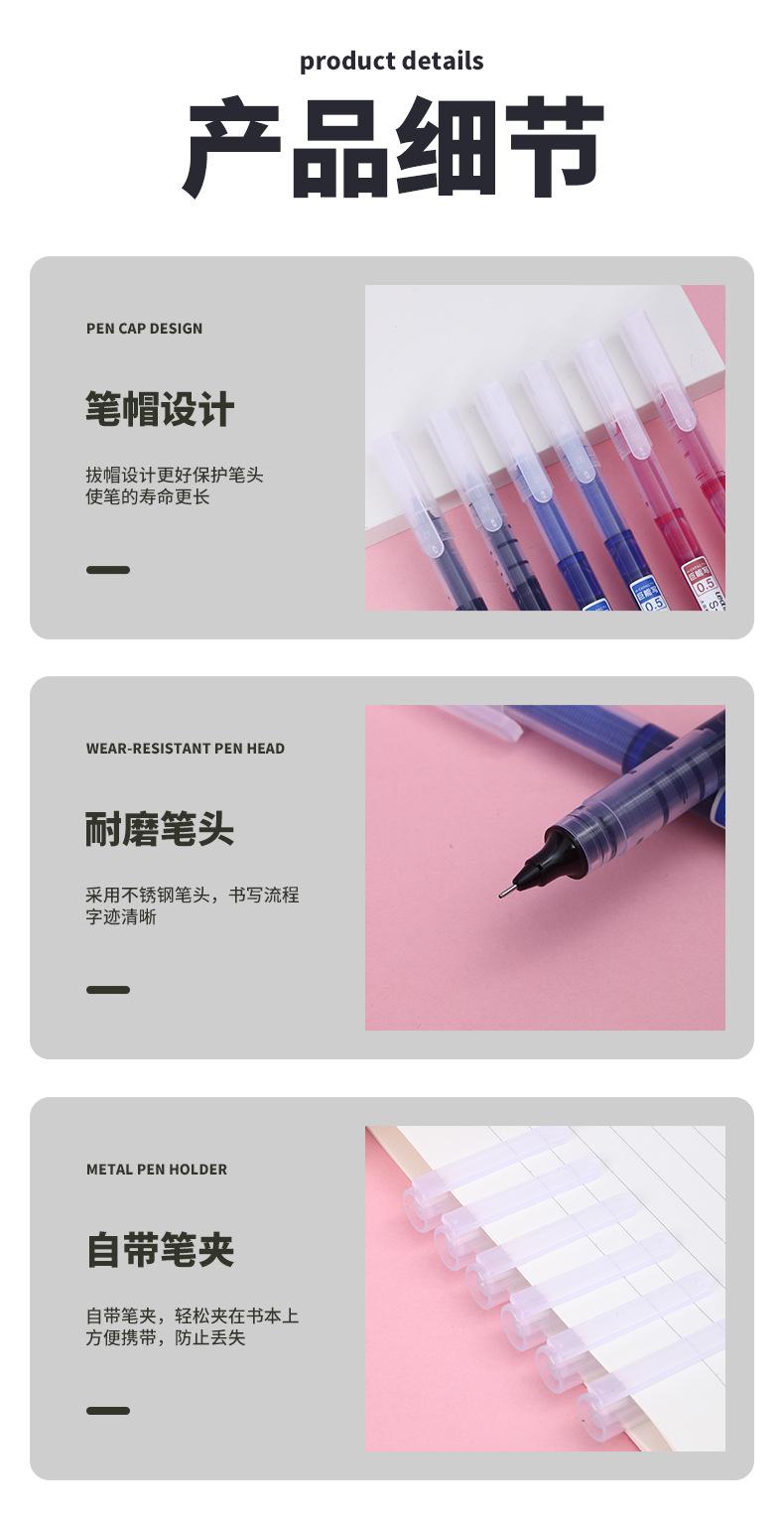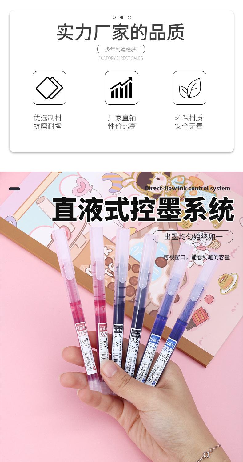 Bolígrafo de punta fina tipo líquido recto negro bolígrafo de agua bolígrafo para firma de oficina bolígrafo de gel especial para examen de estudiante venta al por mayor Juneng escritura