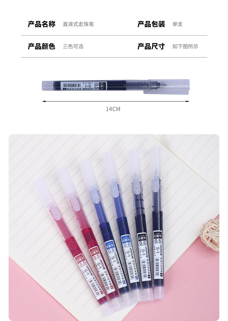 Black--straight liquid ballpoint pen (thick style), Red--straight liquid ballpoint pen (thick style), Blue--st...