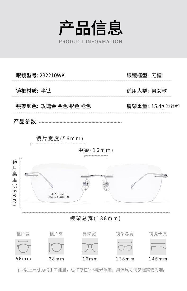 Gafas Danyang, nuevas gafas ultraligeras de titanio puro sin montura para miopía, monturas para hombre, modernas, sencillas y combinables para mujer.