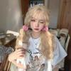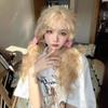 Peluca Xingcheng para mujer, de pelo largo, de lana, con un bonito y dulce rollo, de color blanco dorado, con un pelo largo y rizado, de estilo maíz, a la moda, nueva y con una cobertura total para la cabeza.