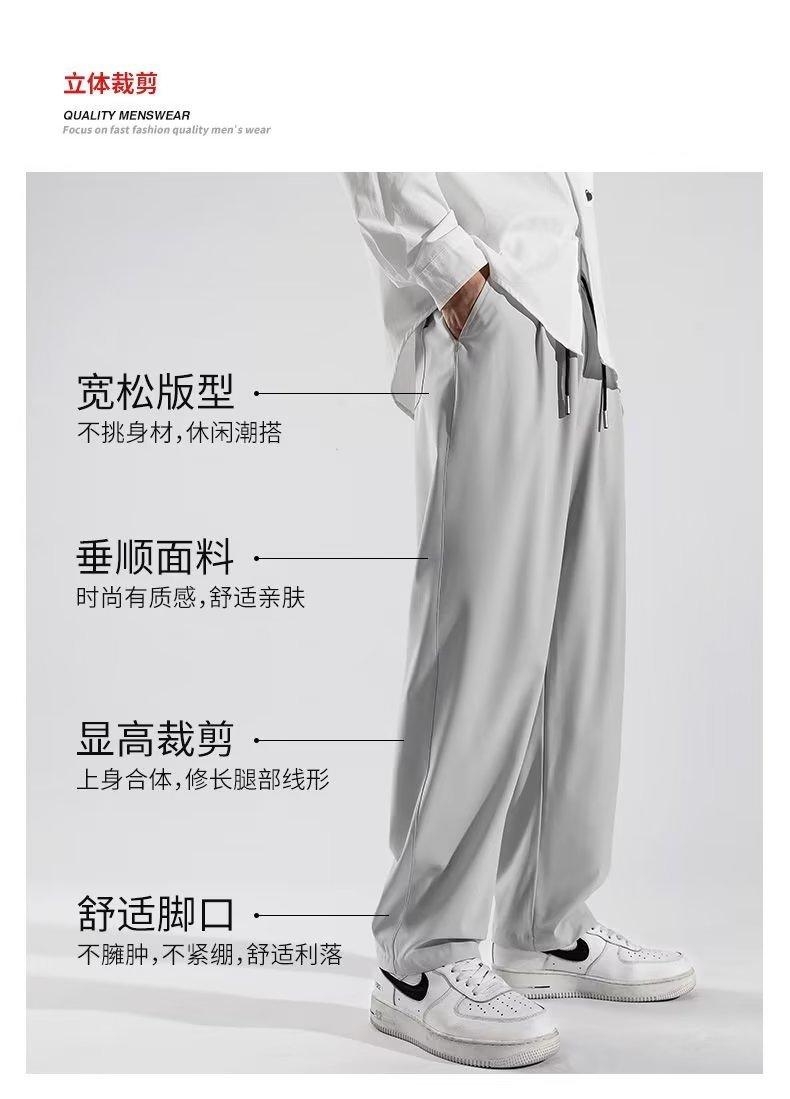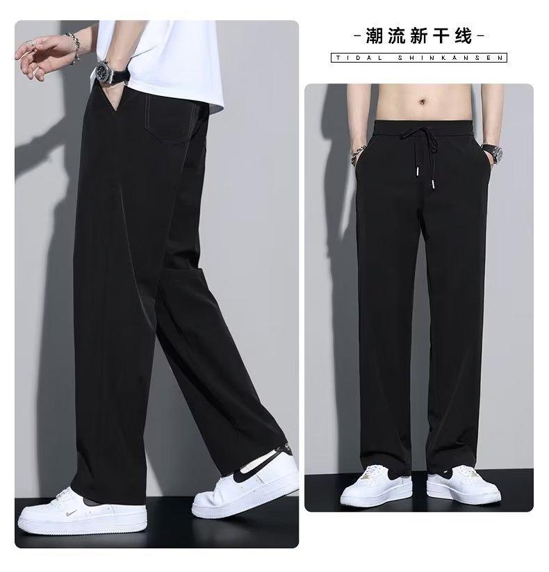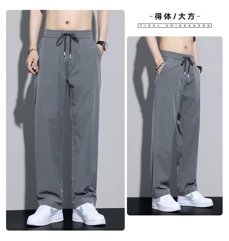 Pantalones de seda de hielo para hombre, pantalones finos, sueltos y rectos de verano, pantalones deportivos casuales de secado rápido para verano