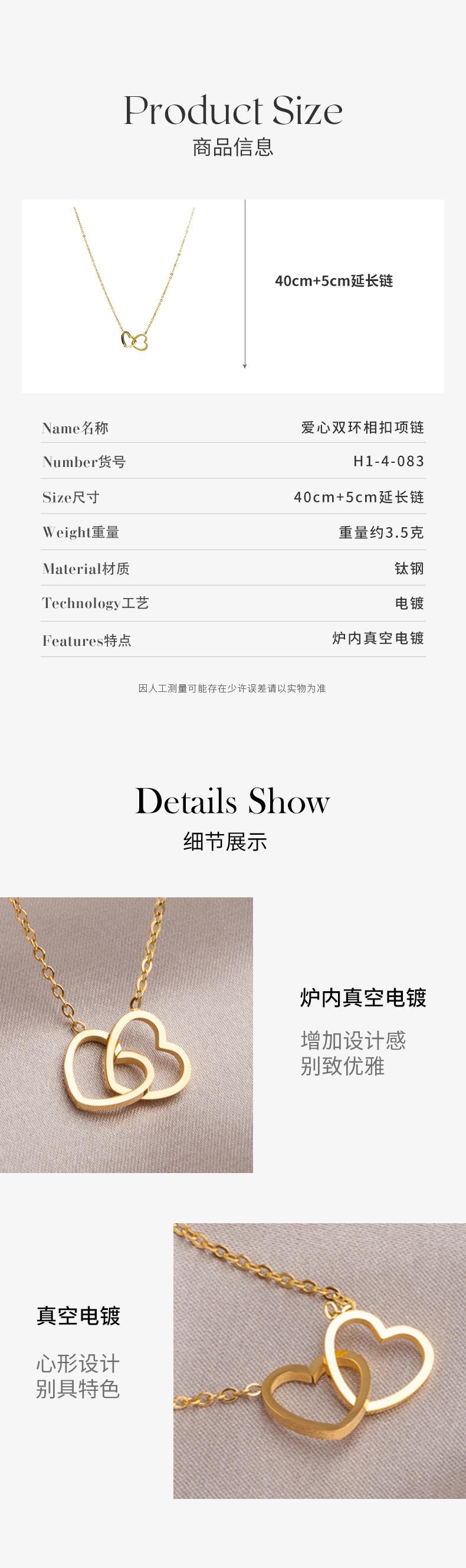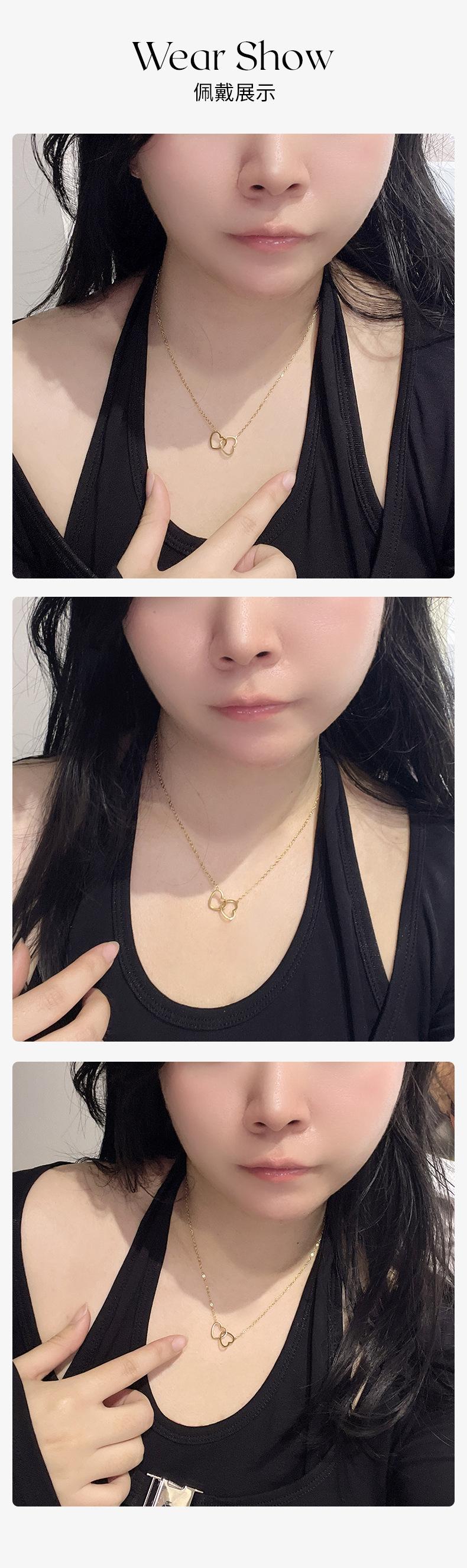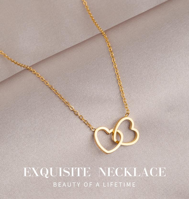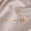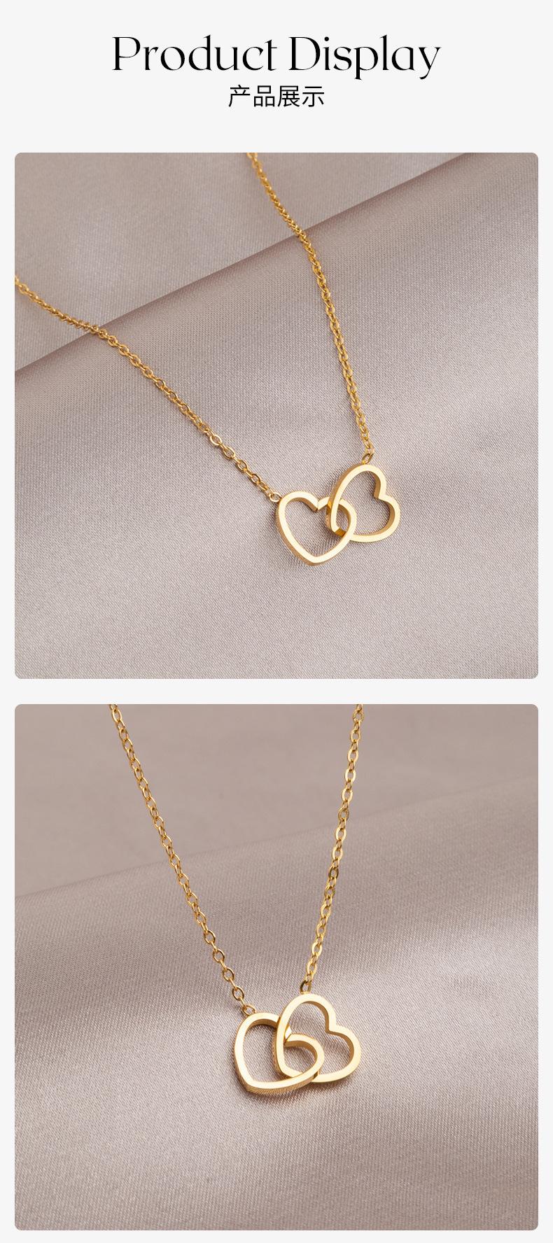 Collar de Acero Titanio que No se Desvanece, Hebilla de Doble Corazón, Cadena de Cuello Simple de Alta Gama, Cadena Versátil para Clavícula, Lujo Accesible Colgante Elegante Popular