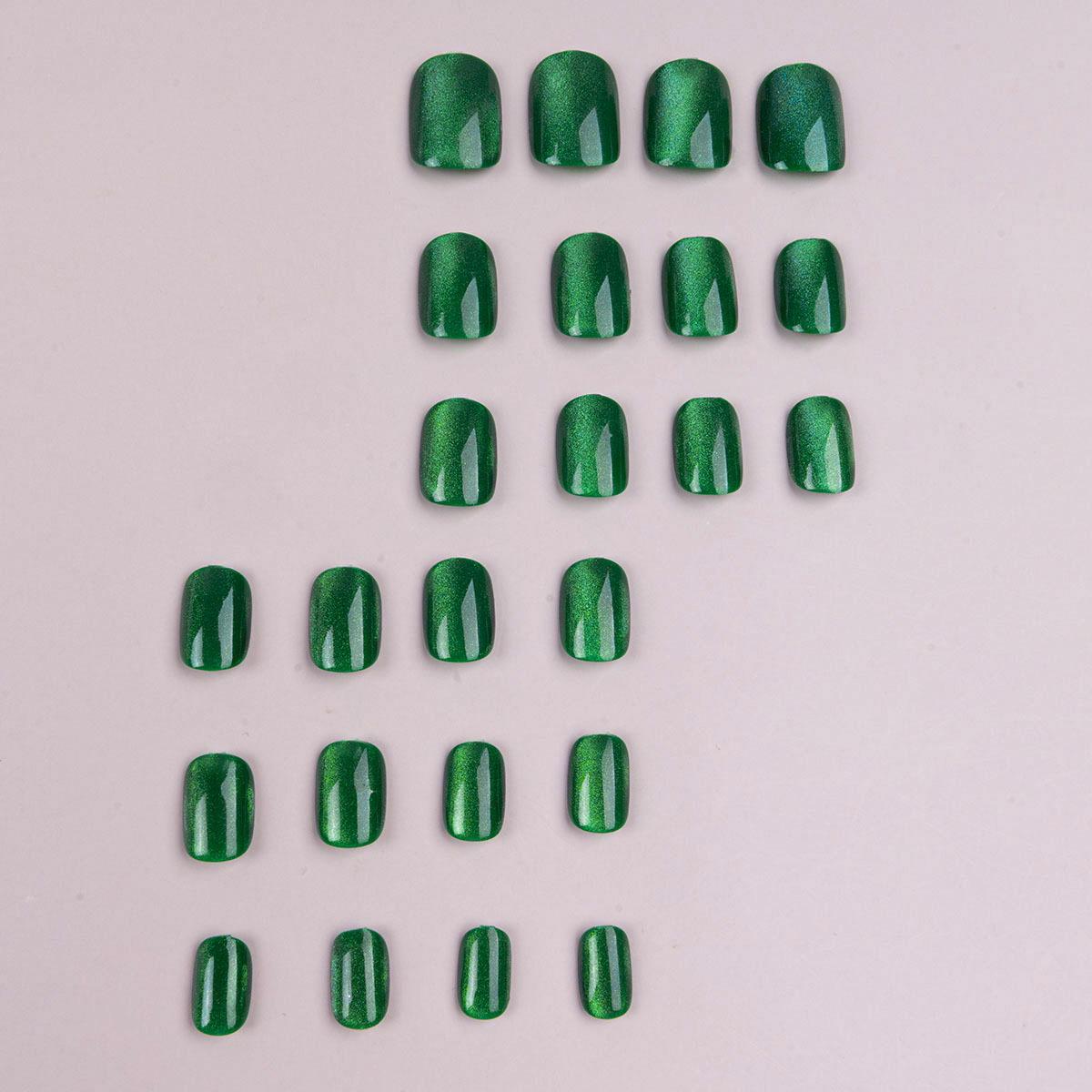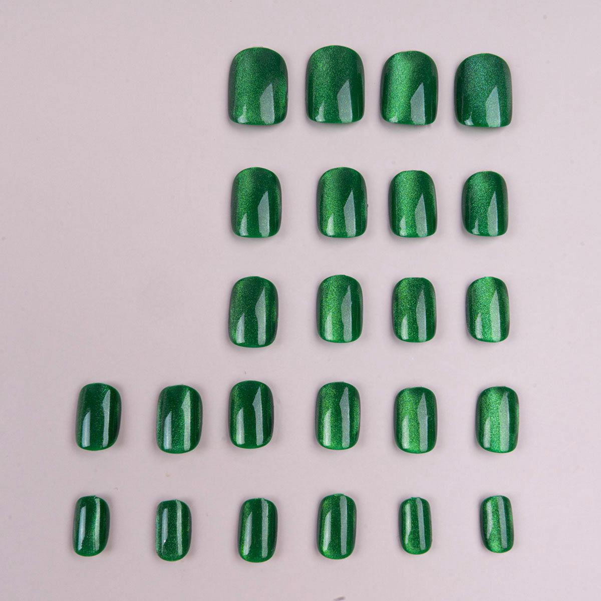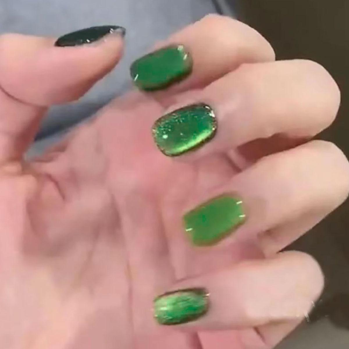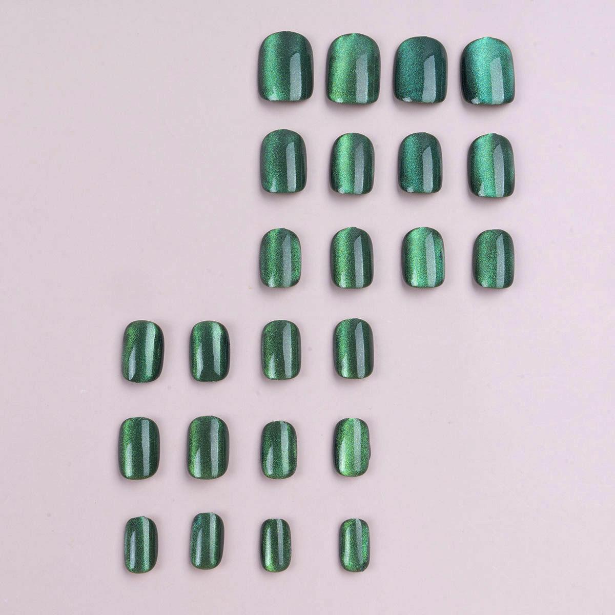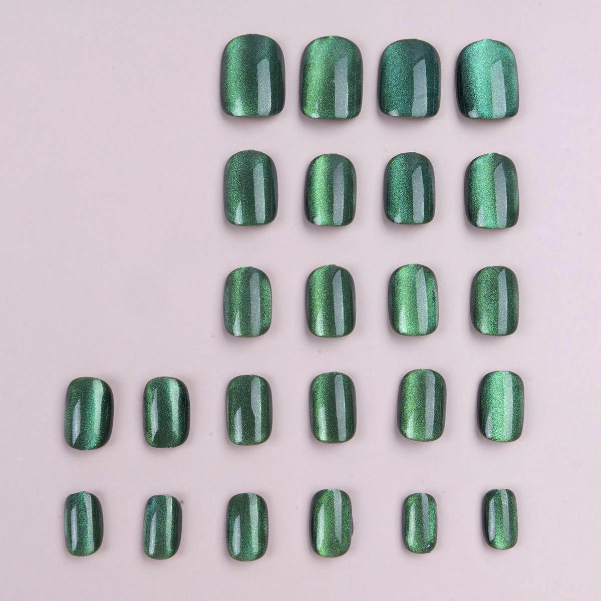 Parche de manicura para uñas con diseño de ojo de gato, color verde avanzado, extraíble, acabado blanco, venta al por mayor