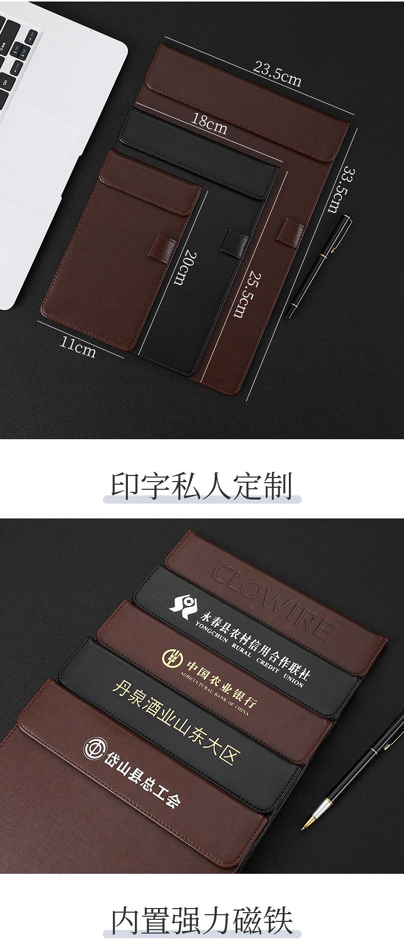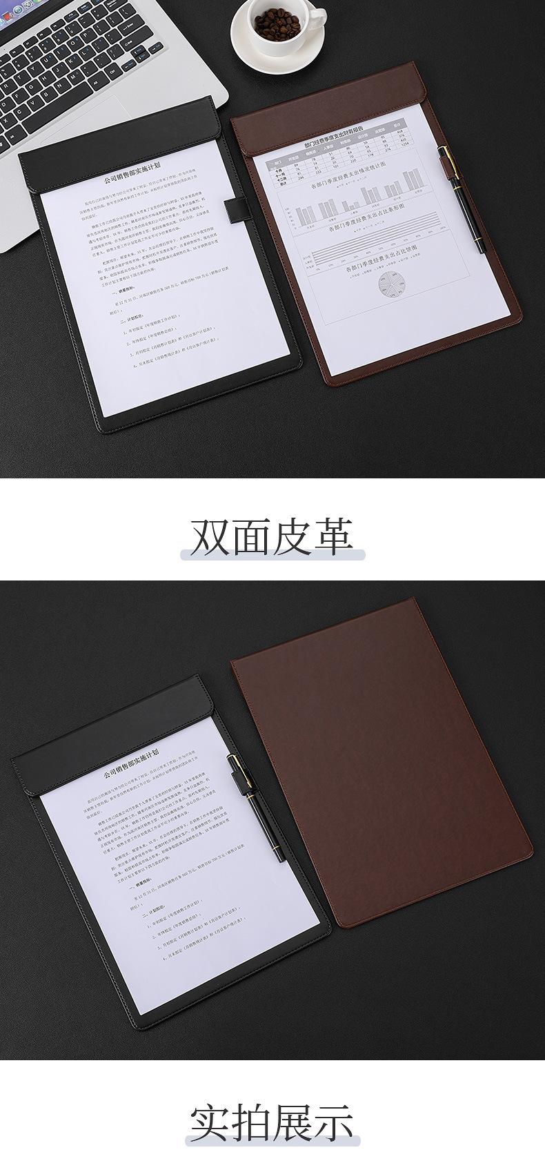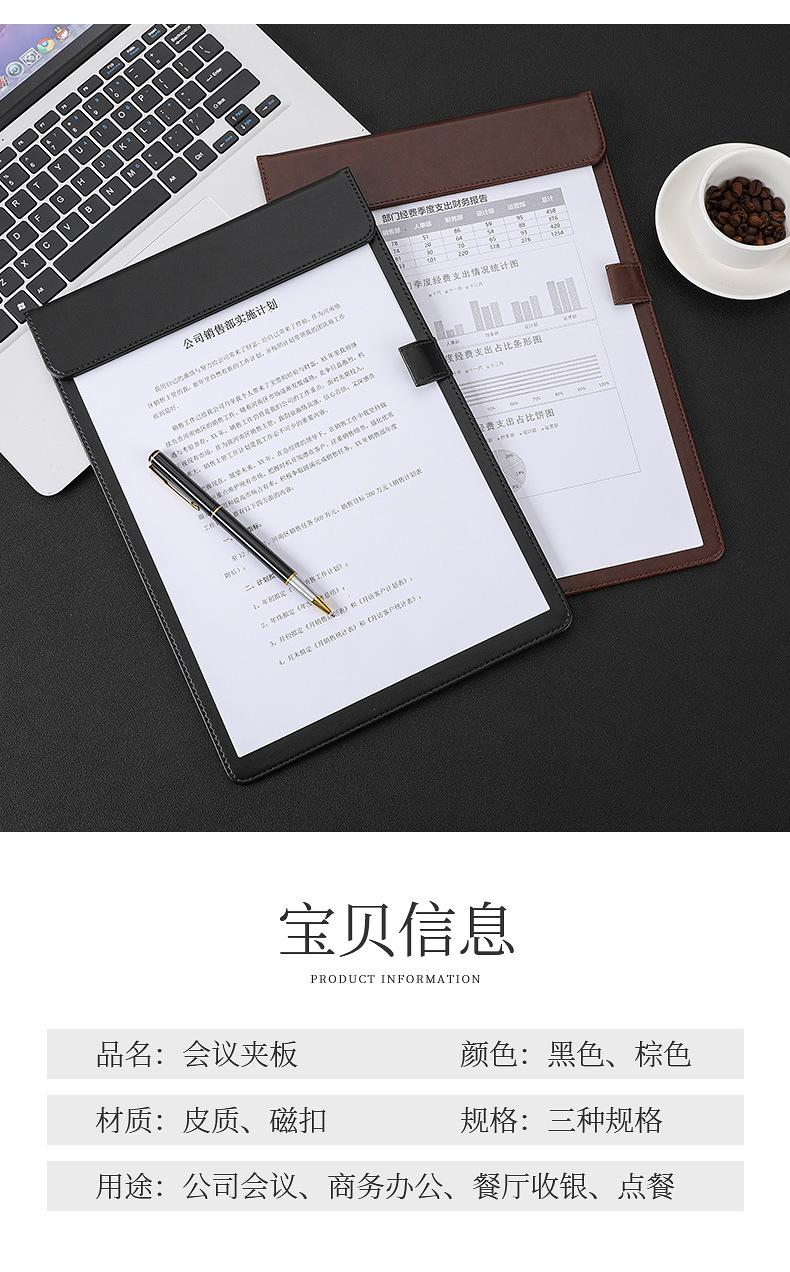 Carpeta de cuero con bloc A4 para firmas de reuniones de oficina de negocios de hotel, tablero duro para oficina, tablero de dibujo con clip, se puede imprimir