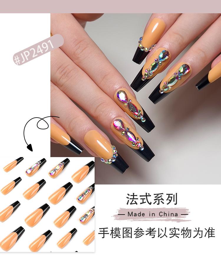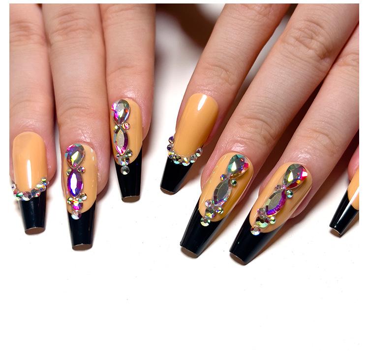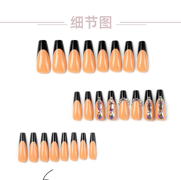 Compra Uñas postizas al por mayor negras estilo francés con pedrería brillante uñas postizas europeas y americanas al por mayor en Joom.pro