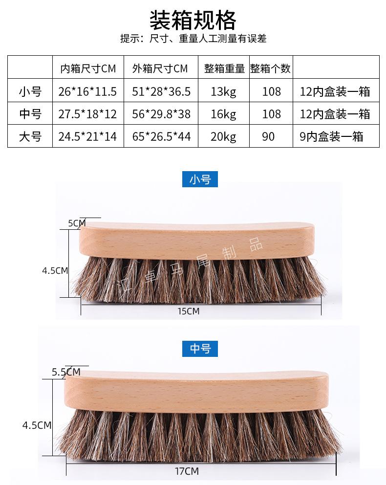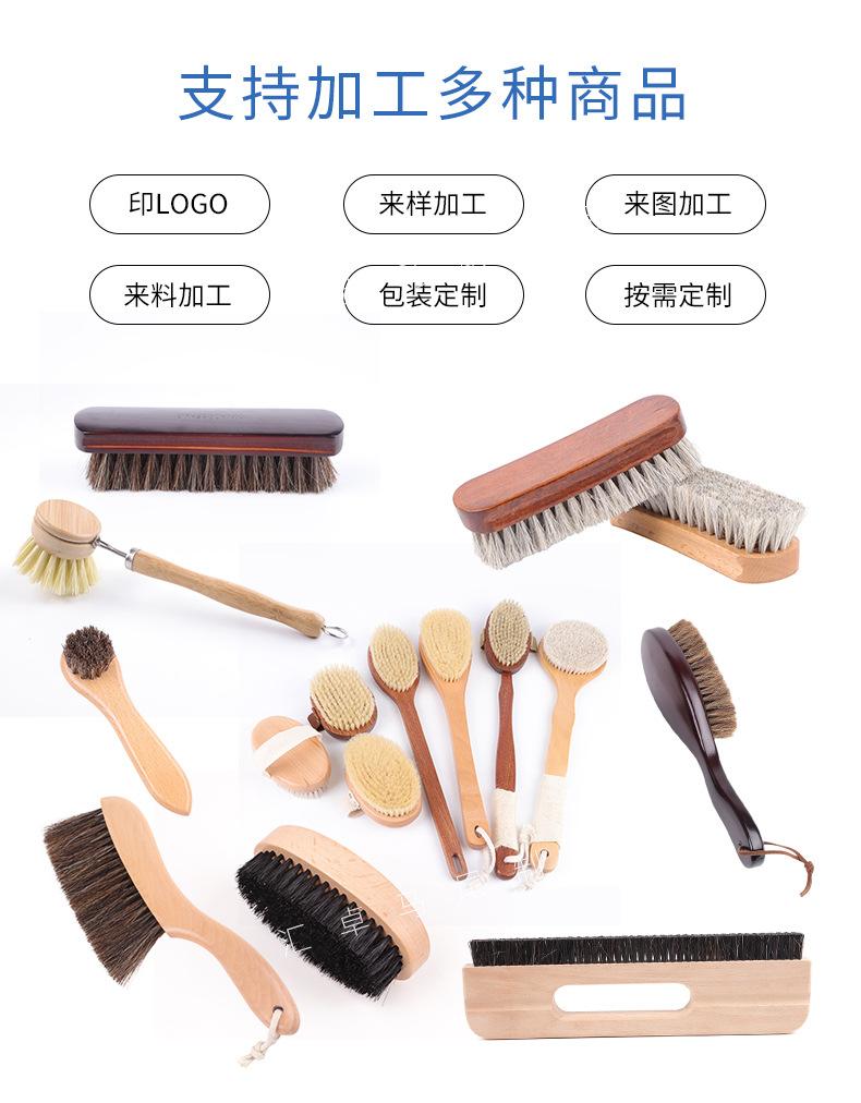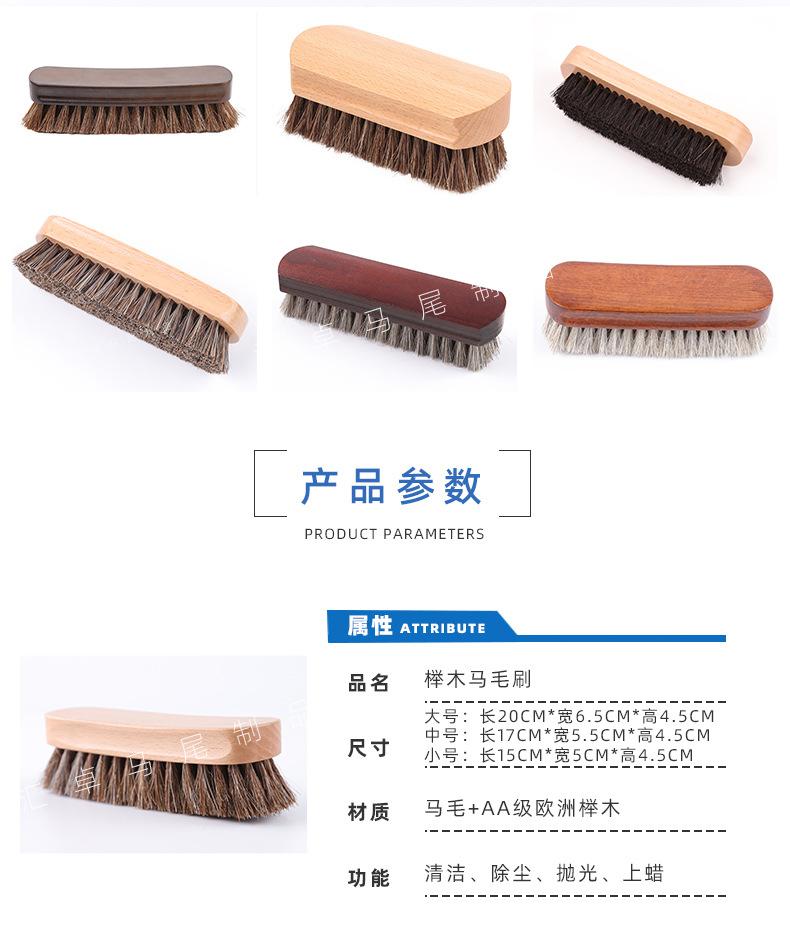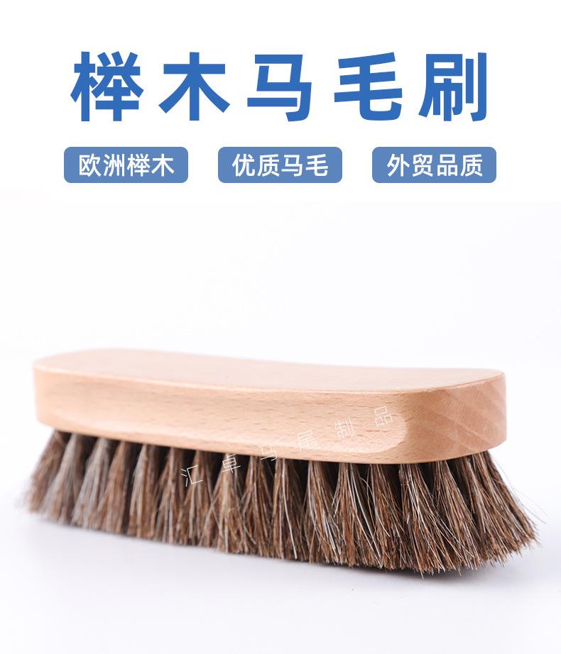 Cepillo de pelo de caballo puro de haya de alta calidad A de comercio exterior, cepillo de madera natural para crin de caballo, cepillo para zapatos de cuero de lana suave para el cuidado del cuero.
