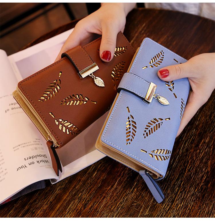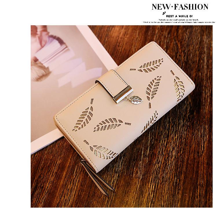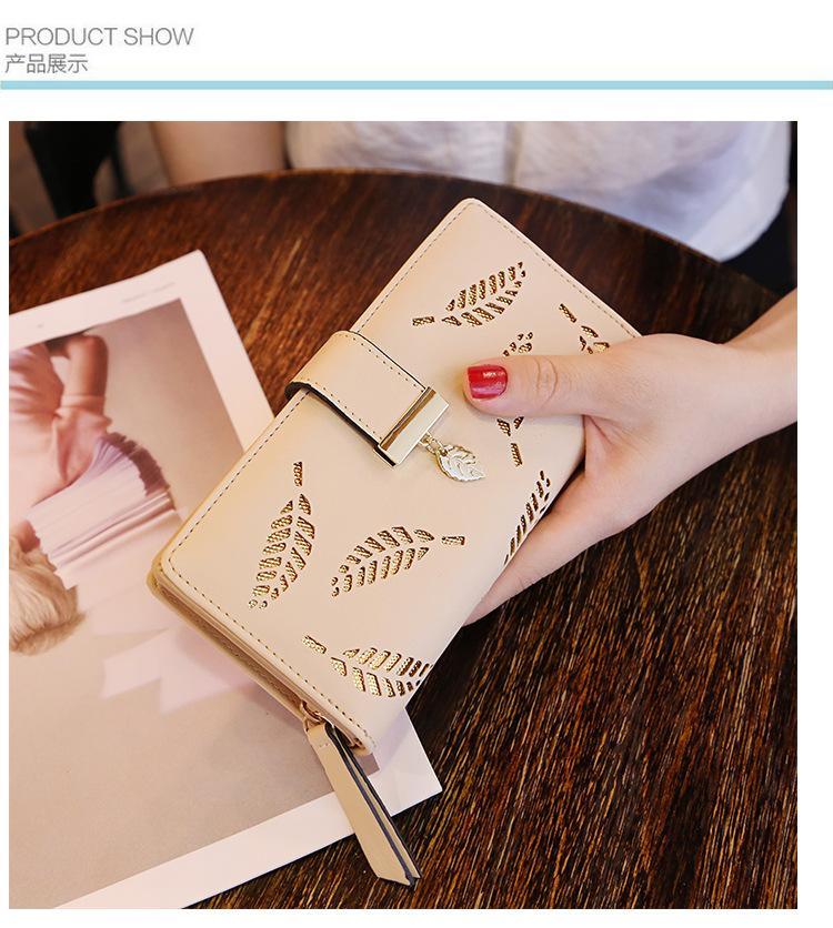 Compra Billetera para mujer de estilo coreano del fabricante, bolso de mano largo de moda con cremallera y cierre de hoja hueca, bolso de mano para mujer al por mayor en Joom.pro