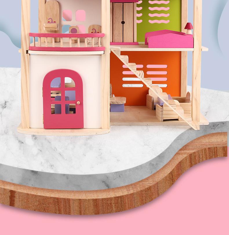 Niñas y Niños Pequeños Juguetes Hechos a Mano Casa de Muñecas Casa de Juego de Madera Castillo de Princesas Casa Rosa Casa de Muñecas