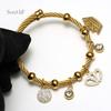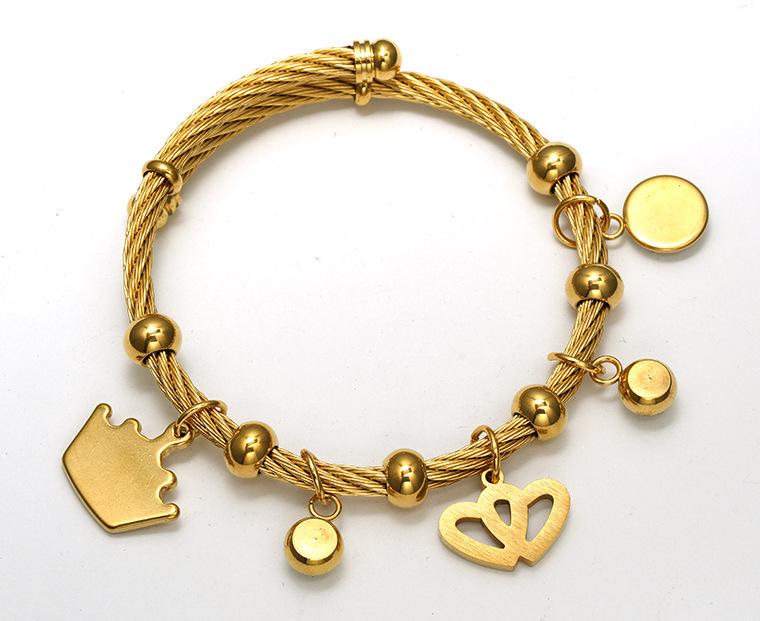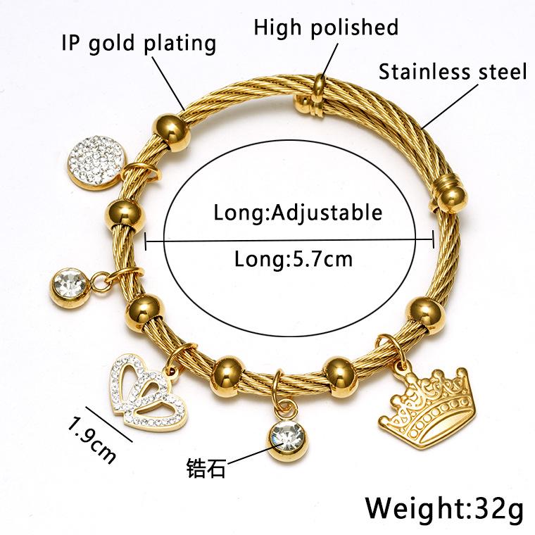 Pulsera de moda europea y americana transfronteriza de acero inoxidable con diamantes en forma de corazón, venta al por mayor, comercio exterior, pulsera de corona de acero de titanio 18K para mujer