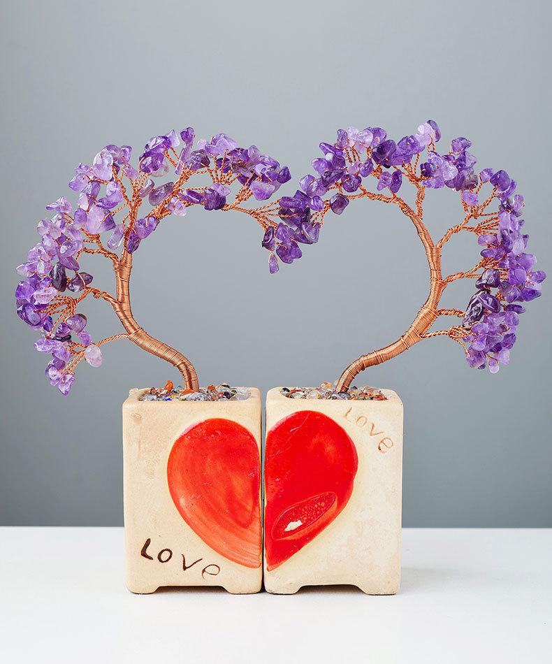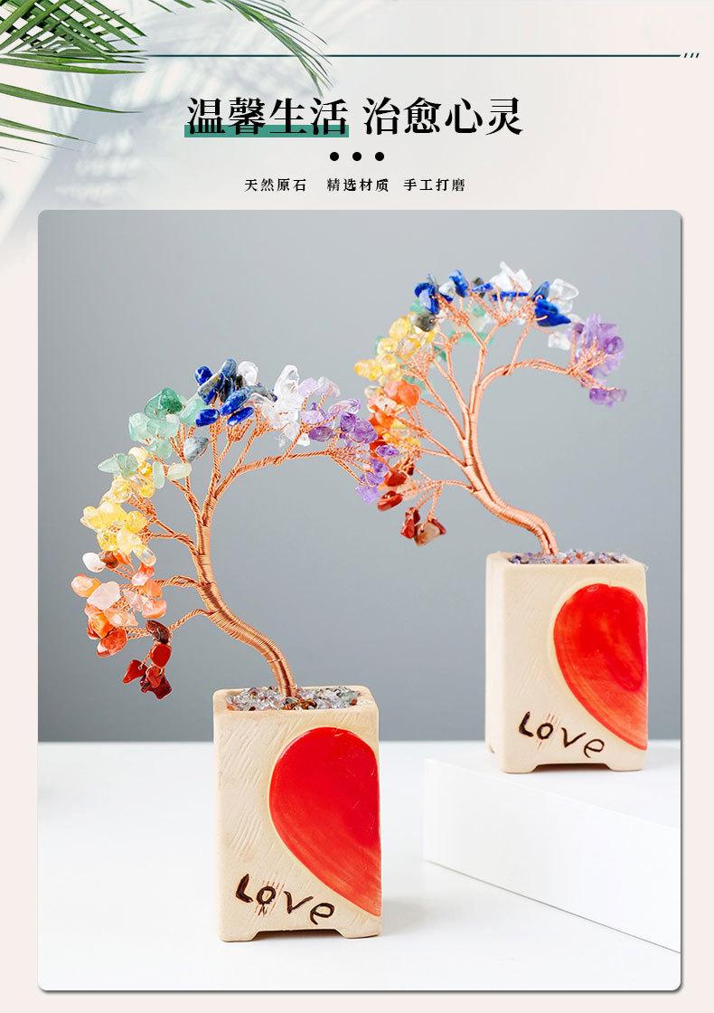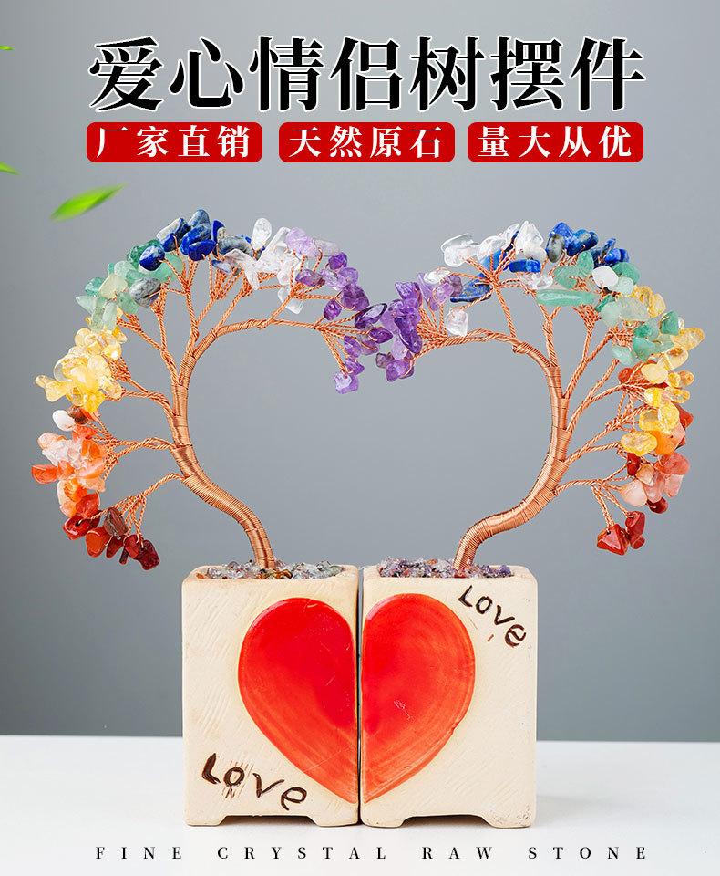 Venta caliente transfronteriza: Adornos de árbol de amatista con grava de cristal natural para parejas, artesanías para decorar el hogar.